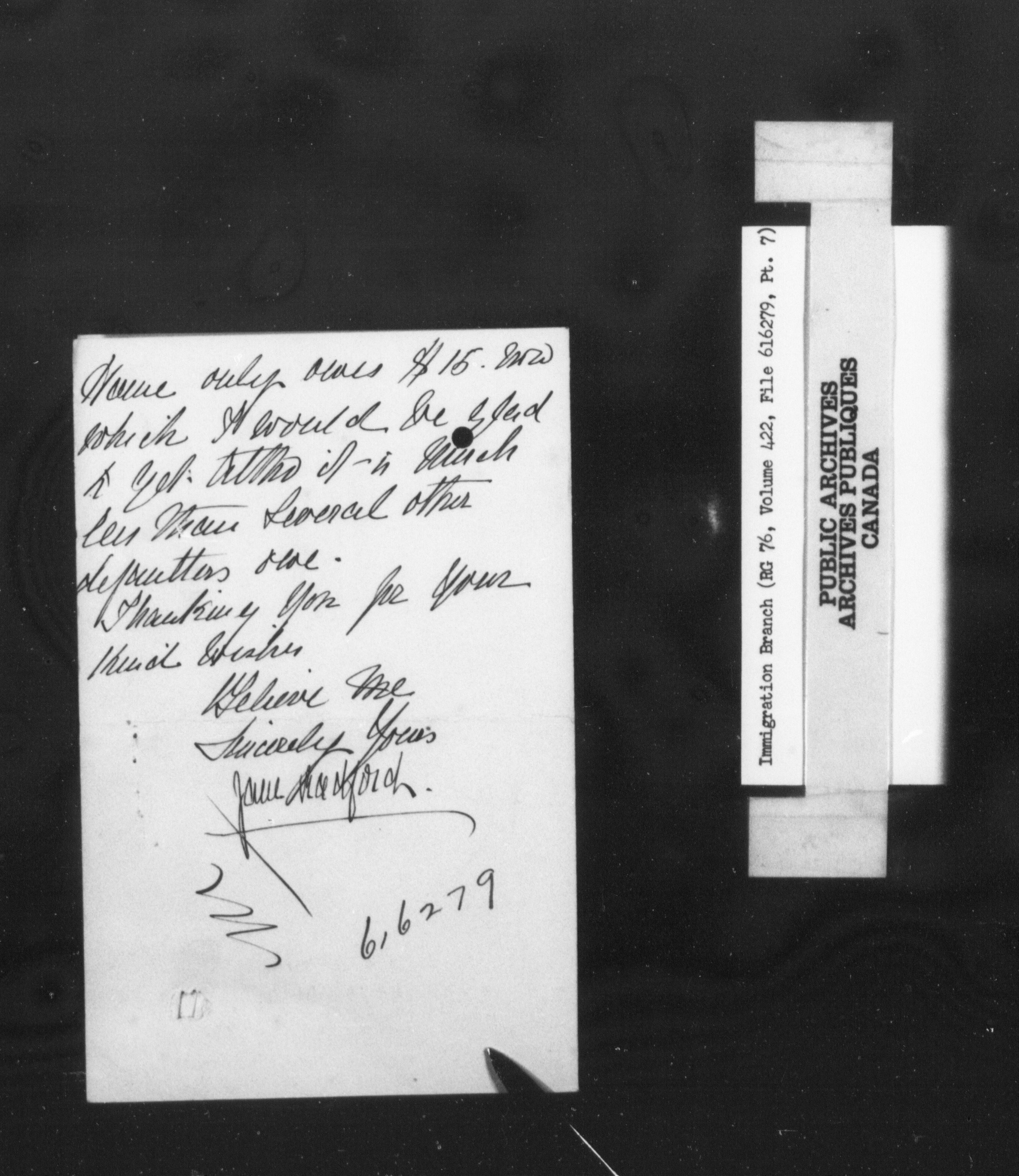 Subject, policy and case files in the First Central Registry series of the Immigration Program, 1892-1950 - 10307