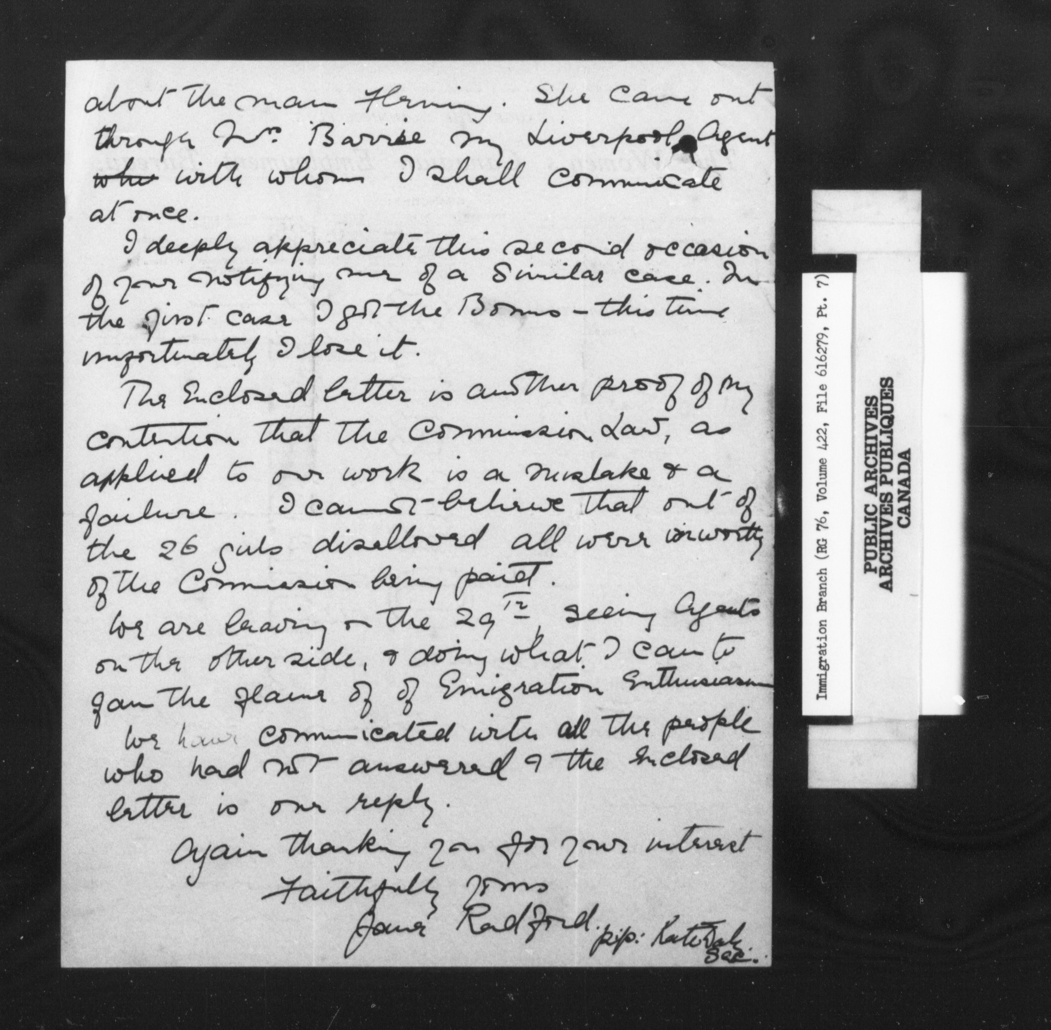 Subject, policy and case files in the First Central Registry series of the Immigration Program, 1892-1950 - 10307