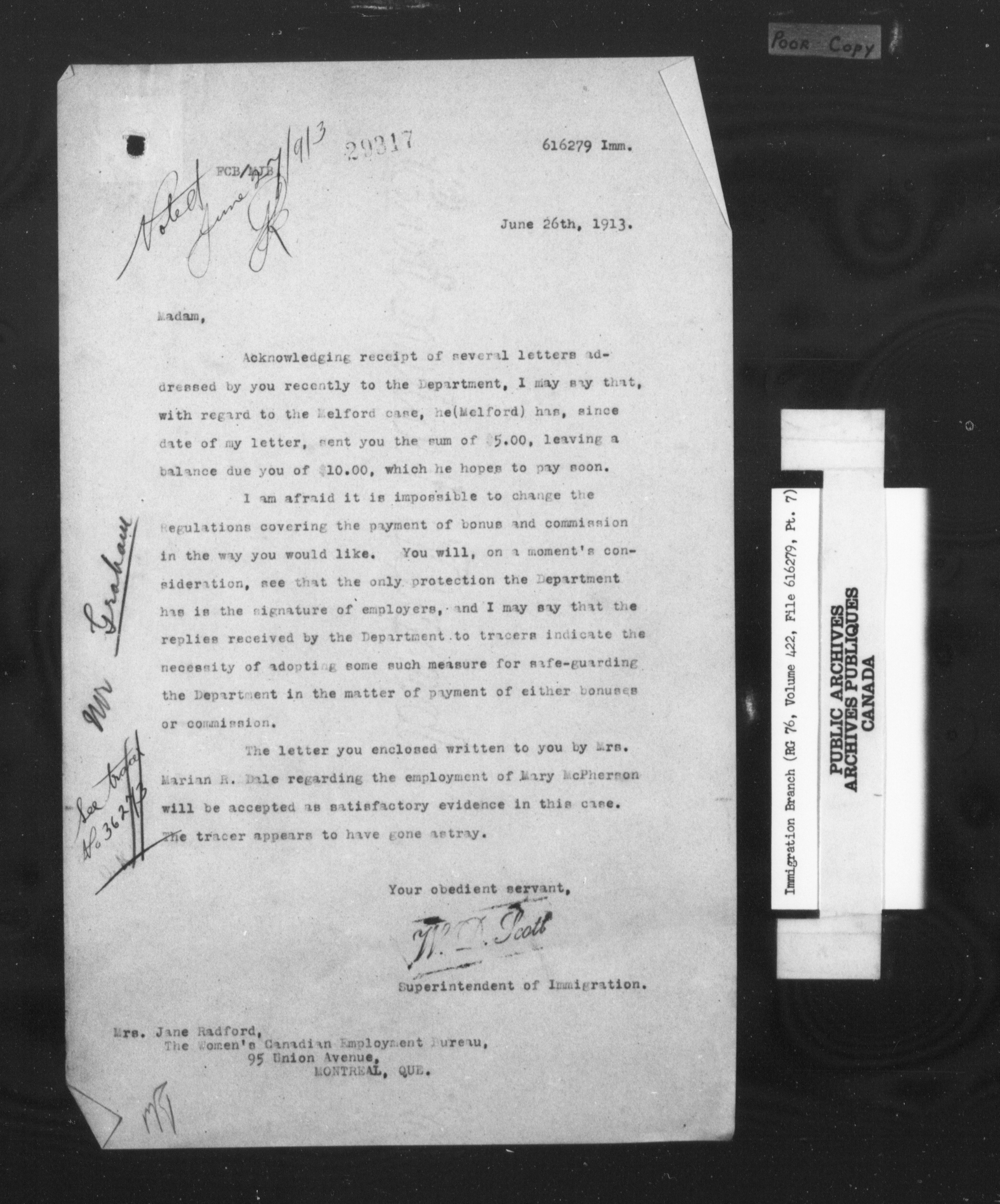 Subject, policy and case files in the First Central Registry series of the Immigration Program, 1892-1950 - 10307
