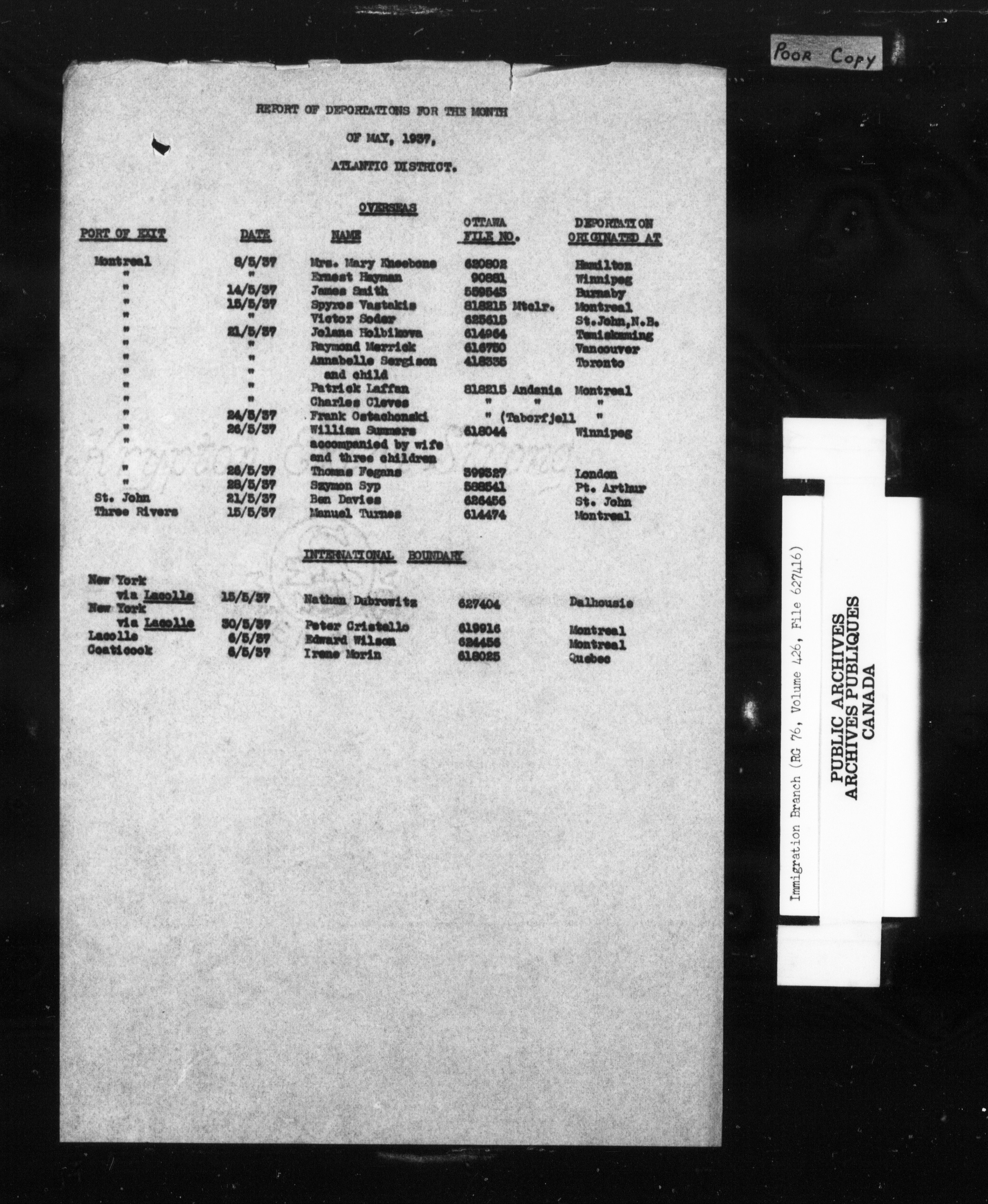 Subject, policy and case files in the First Central Registry series of the Immigration Program, 1892-1950 - 10308