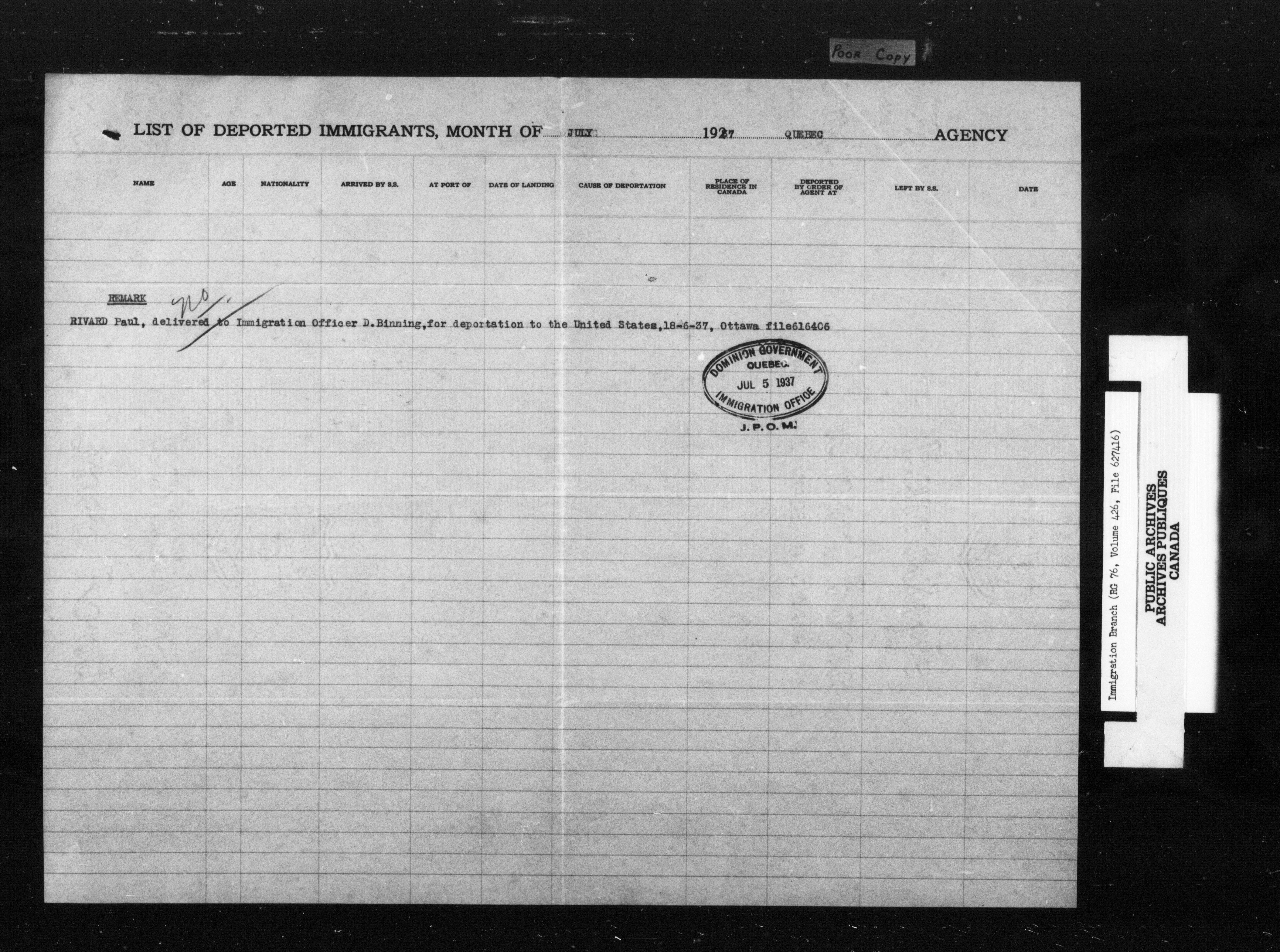 Subject, policy and case files in the First Central Registry series of the Immigration Program, 1892-1950 - 10308