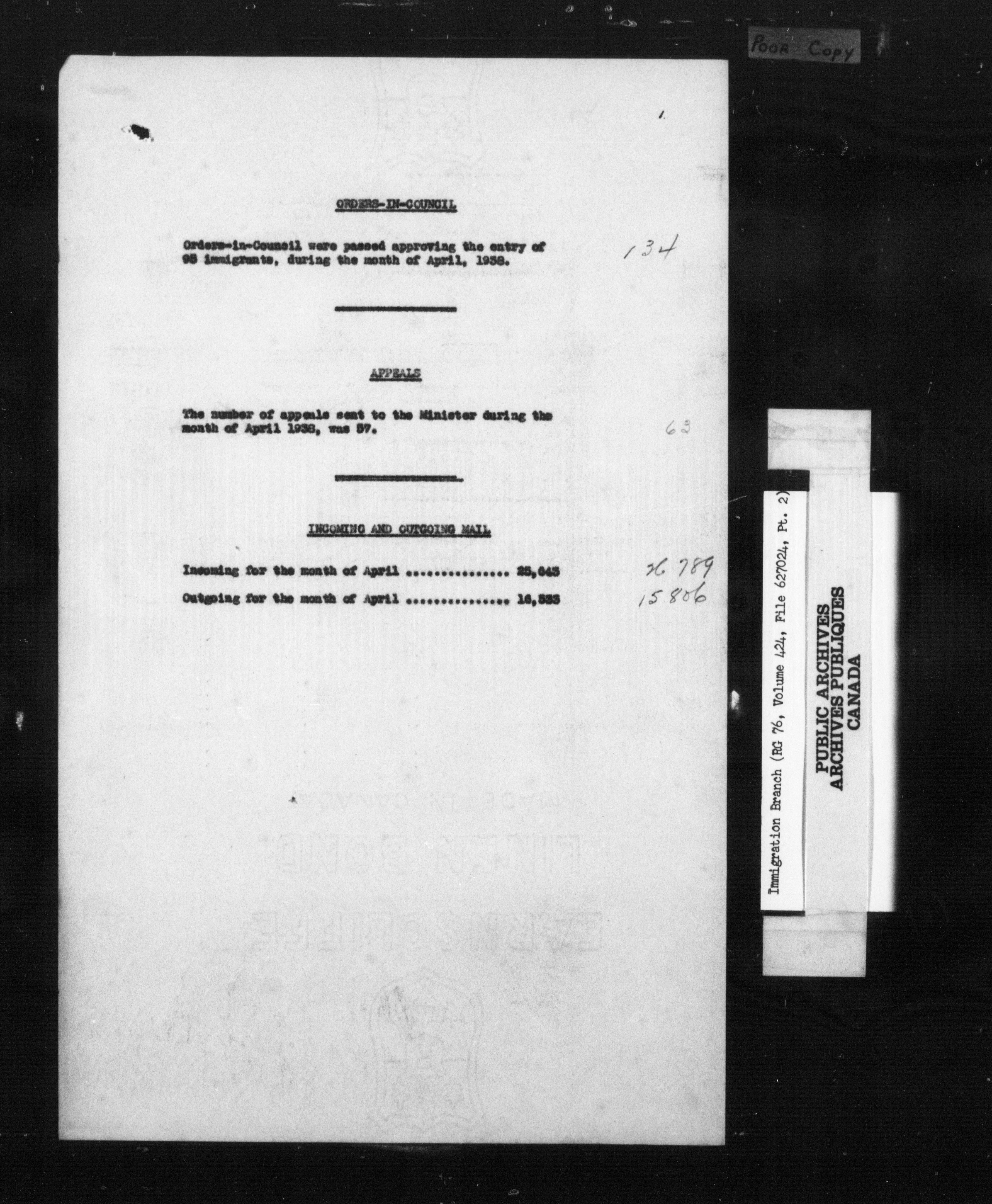 Subject, policy and case files in the First Central Registry series of the Immigration Program, 1892-1950 - 10308