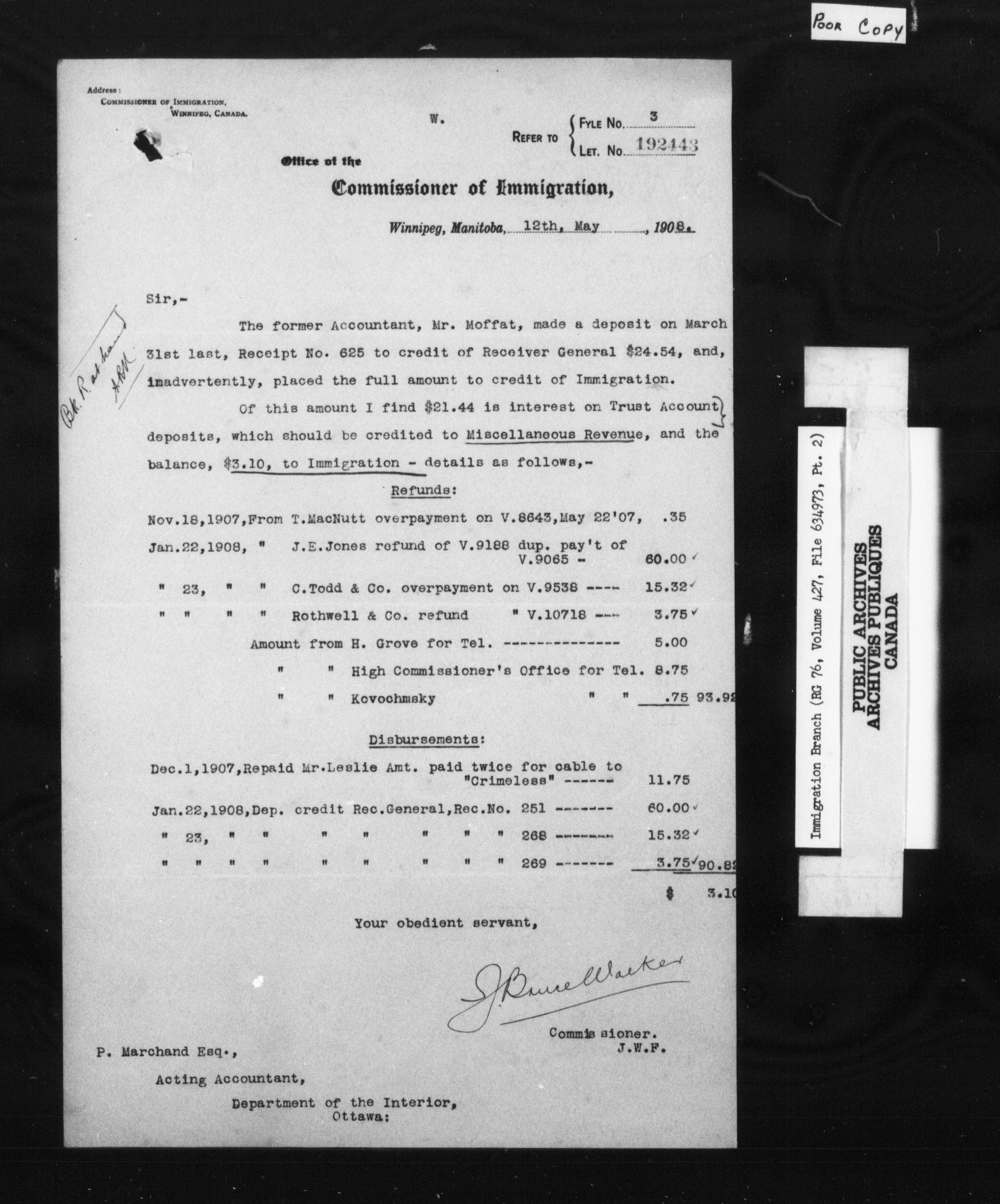 Subject, policy and case files in the First Central Registry series of the Immigration Program, 1892-1950 - 10310