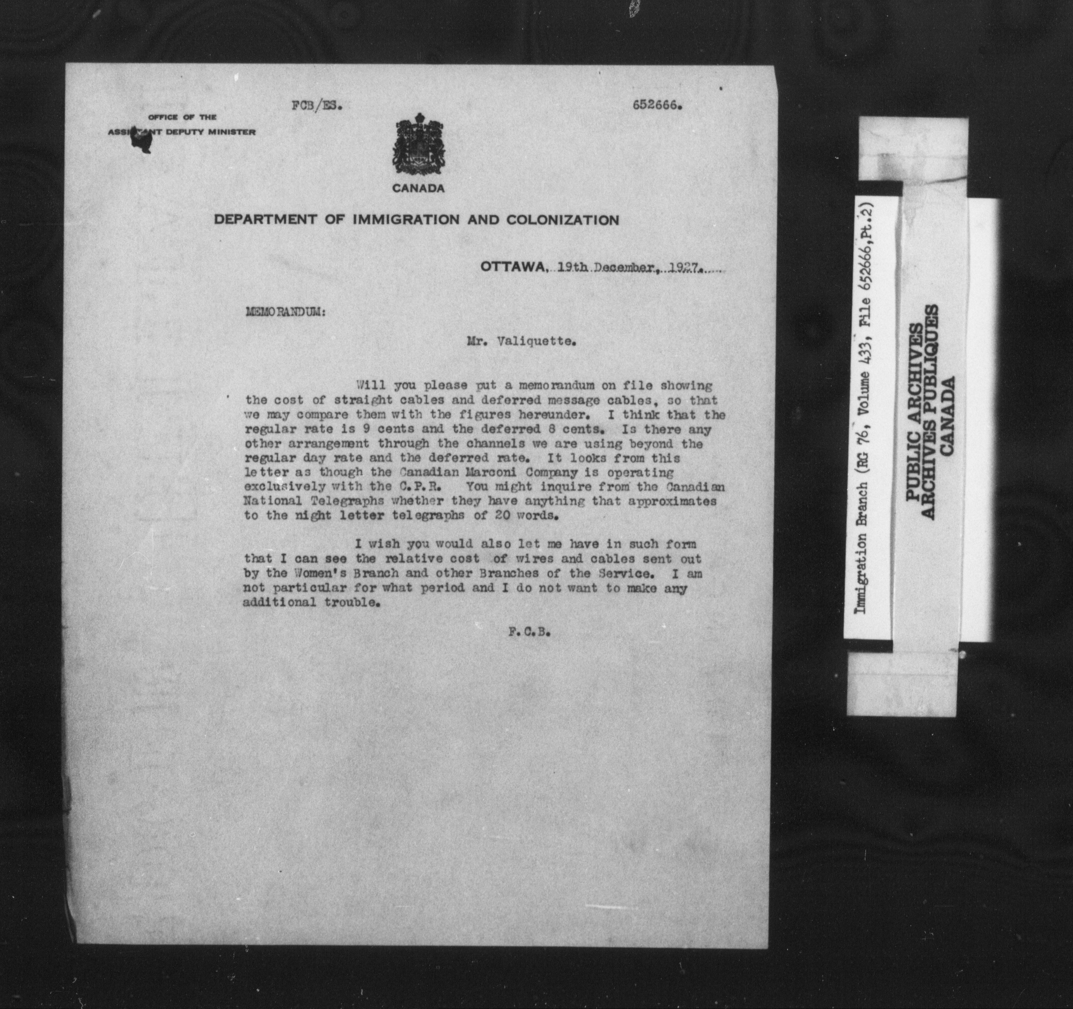 Subject, policy and case files in the First Central Registry series of the Immigration Program, 1892-1950 - 10313