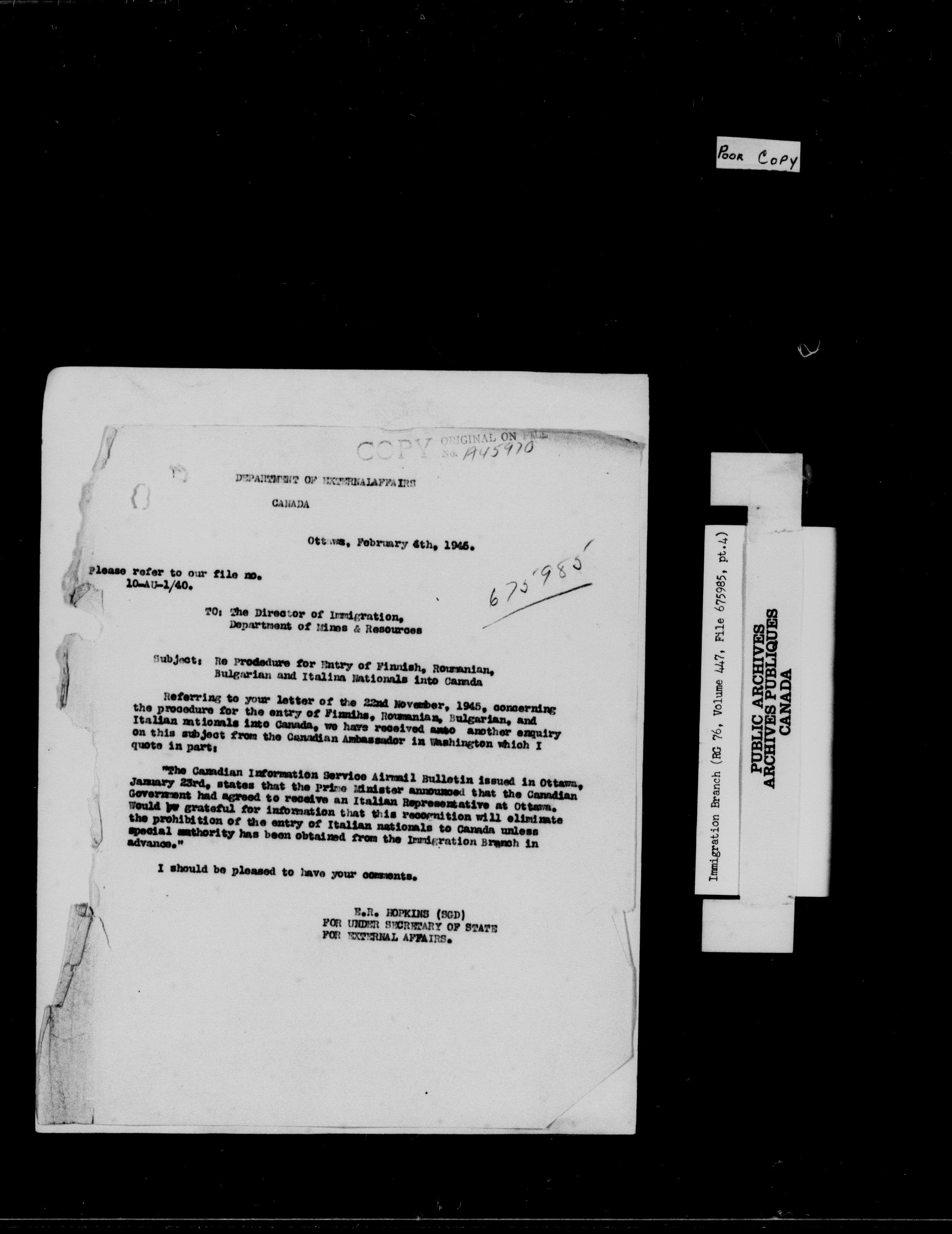 Subject, policy and case files in the First Central Registry series of the Immigration Program, 1892-1950 - 10322