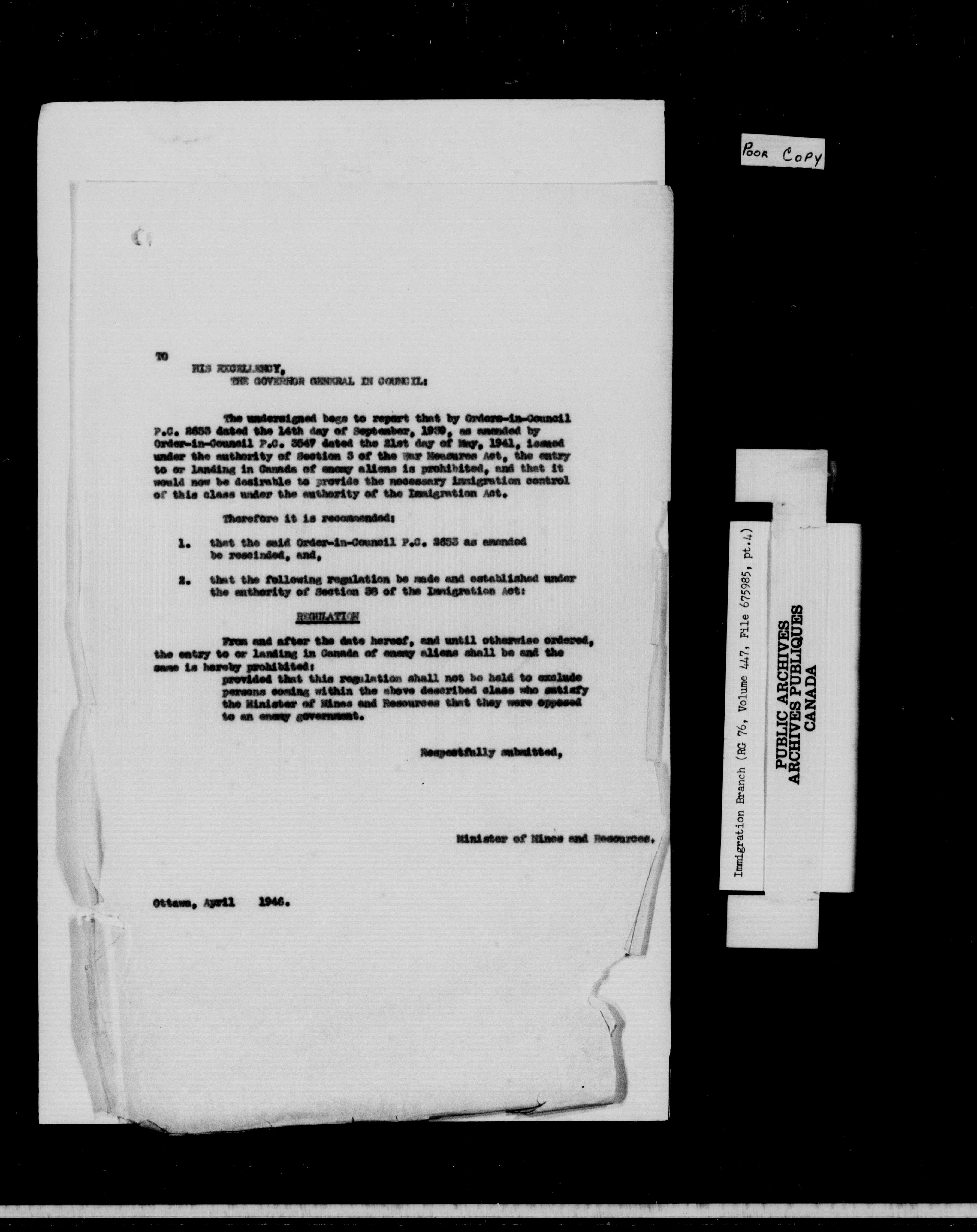 Subject, policy and case files in the First Central Registry series of the Immigration Program, 1892-1950 - 10322