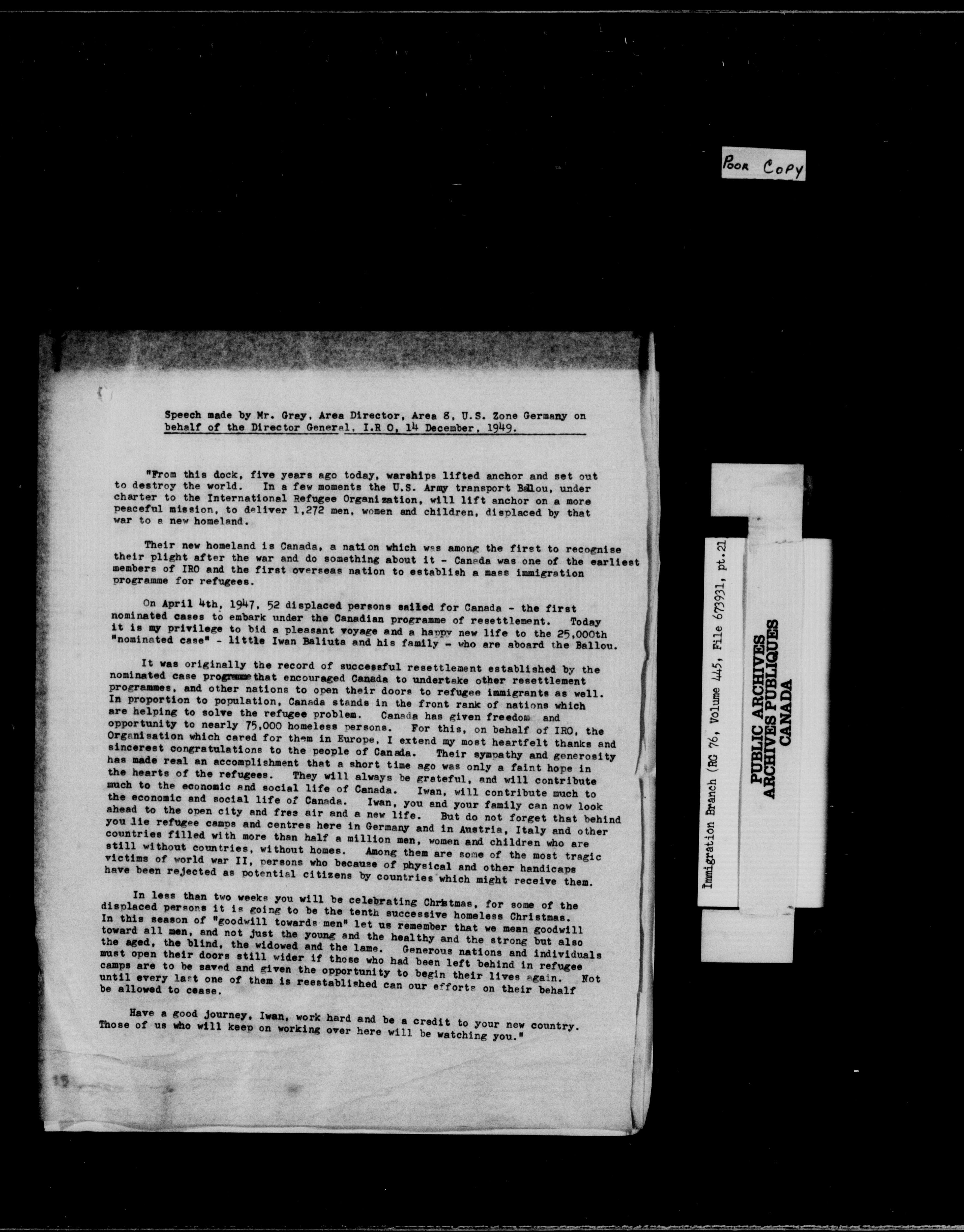 Subject, policy and case files in the First Central Registry series of the Immigration Program, 1892-1950 - 10322