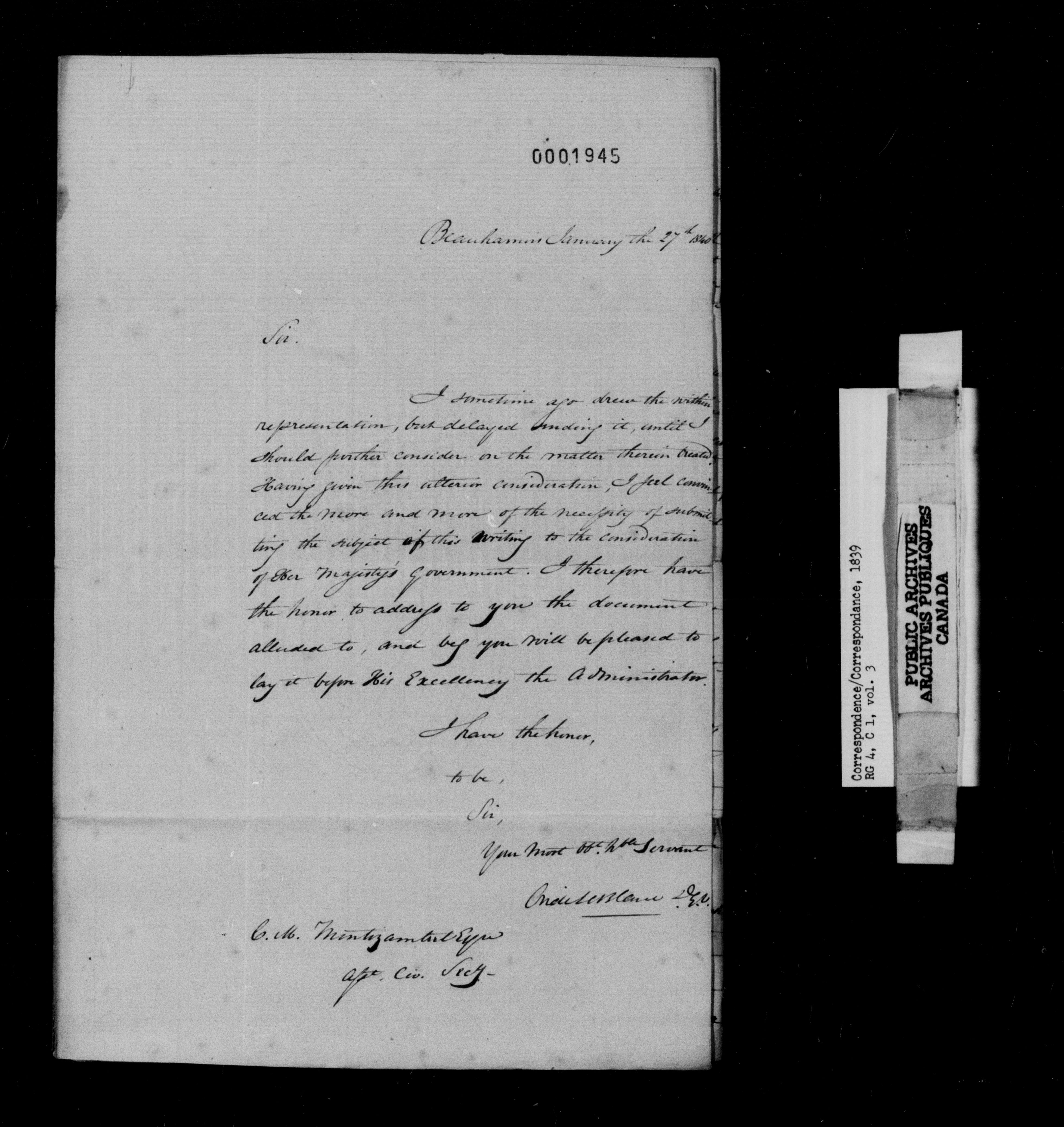 Canada East : Provincial Secretary numbered correspondence files, 1839-1867 : C-10340