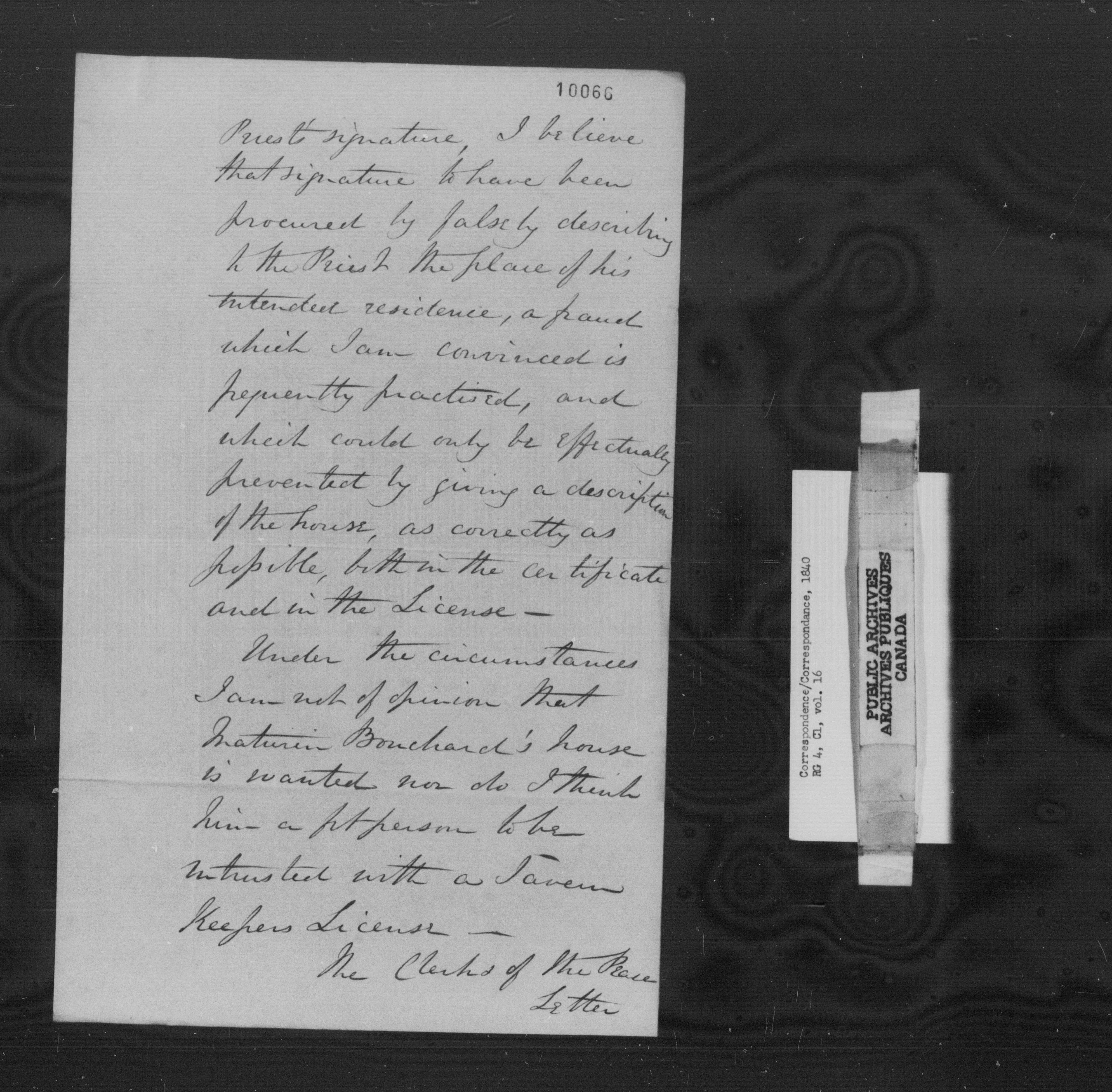 Canada East : Provincial Secretary numbered correspondence files, 1839-1867 : C-10396