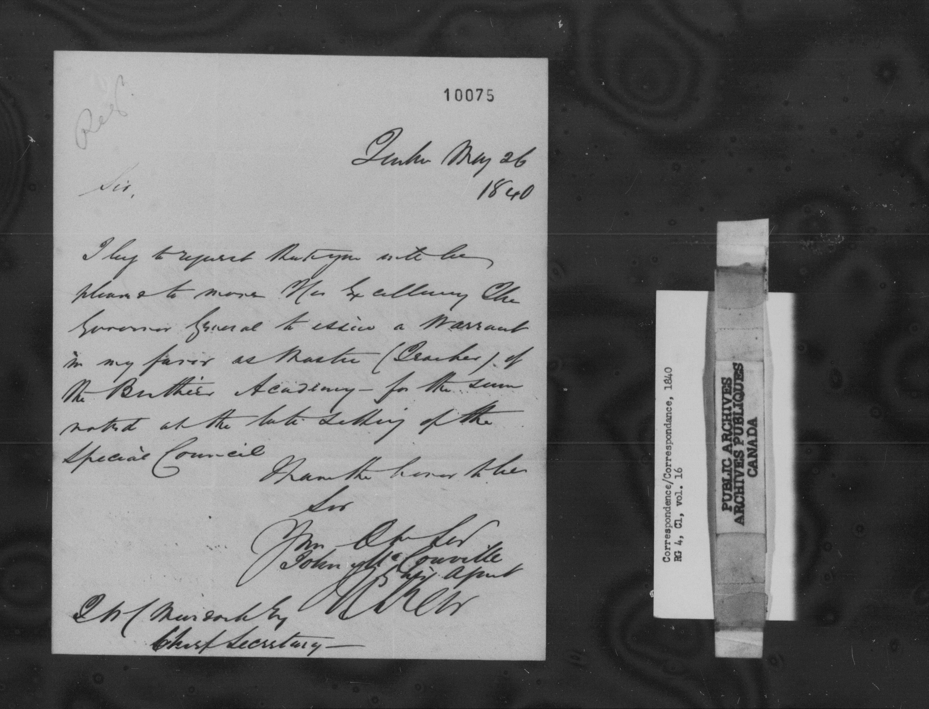 Provincial Secretary, Canada East : Numbered correspondence files, 1839-1867 - 10396