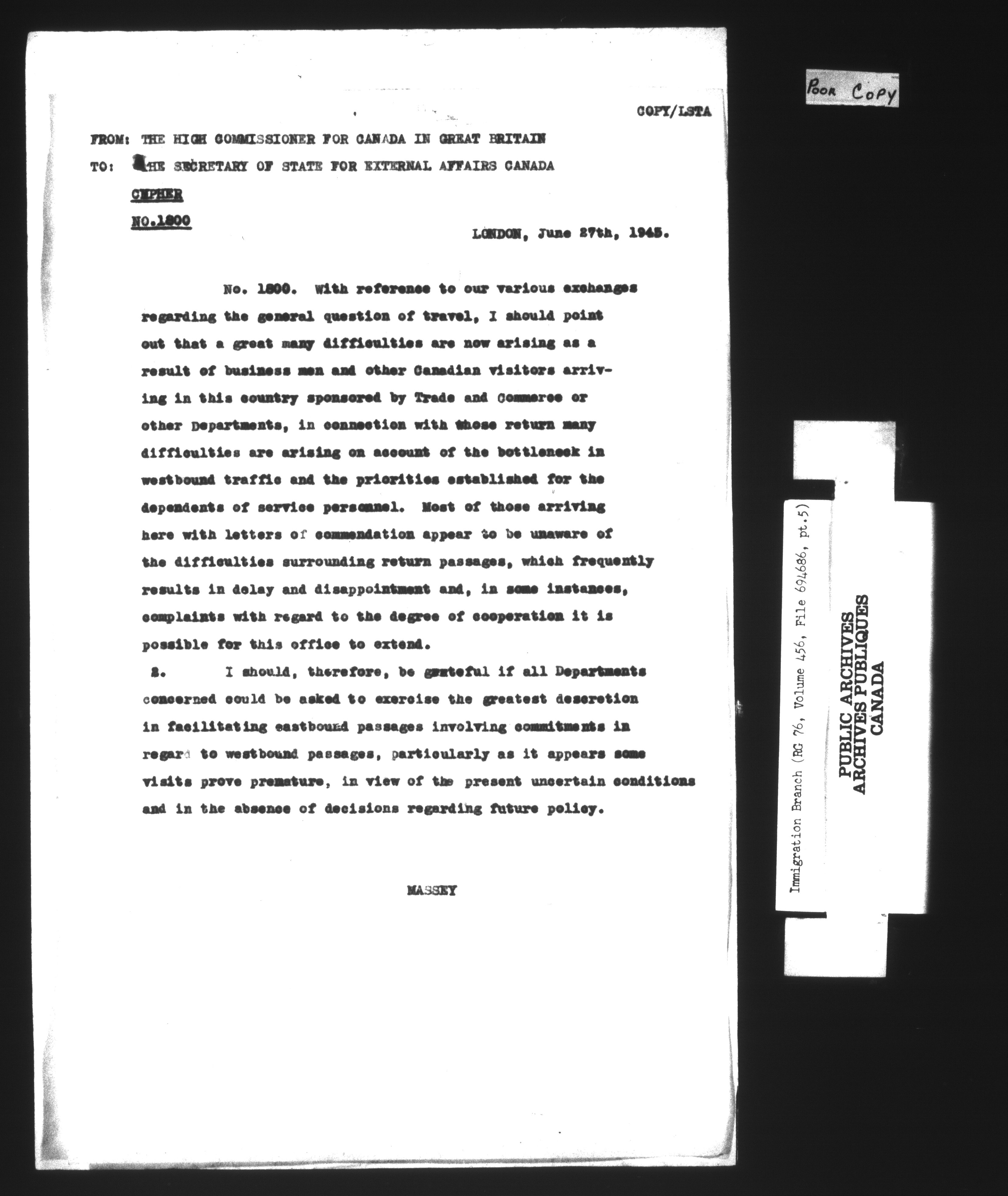 Subject, policy and case files in the First Central Registry series of the Immigration Program, 1892-1950 - 10397