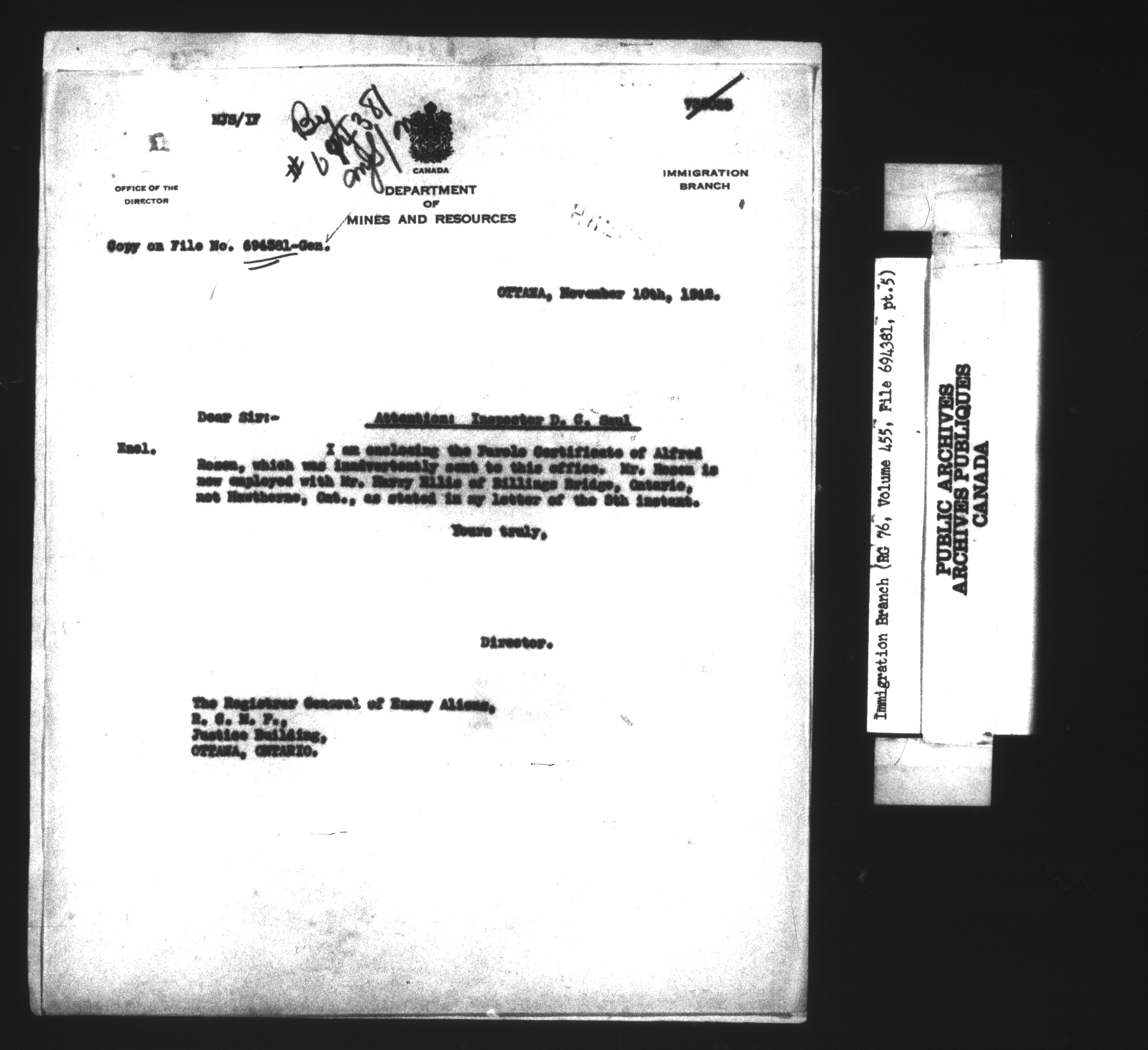 Subject, policy and case files in the First Central Registry series of the Immigration Program, 1892-1950 - 10397