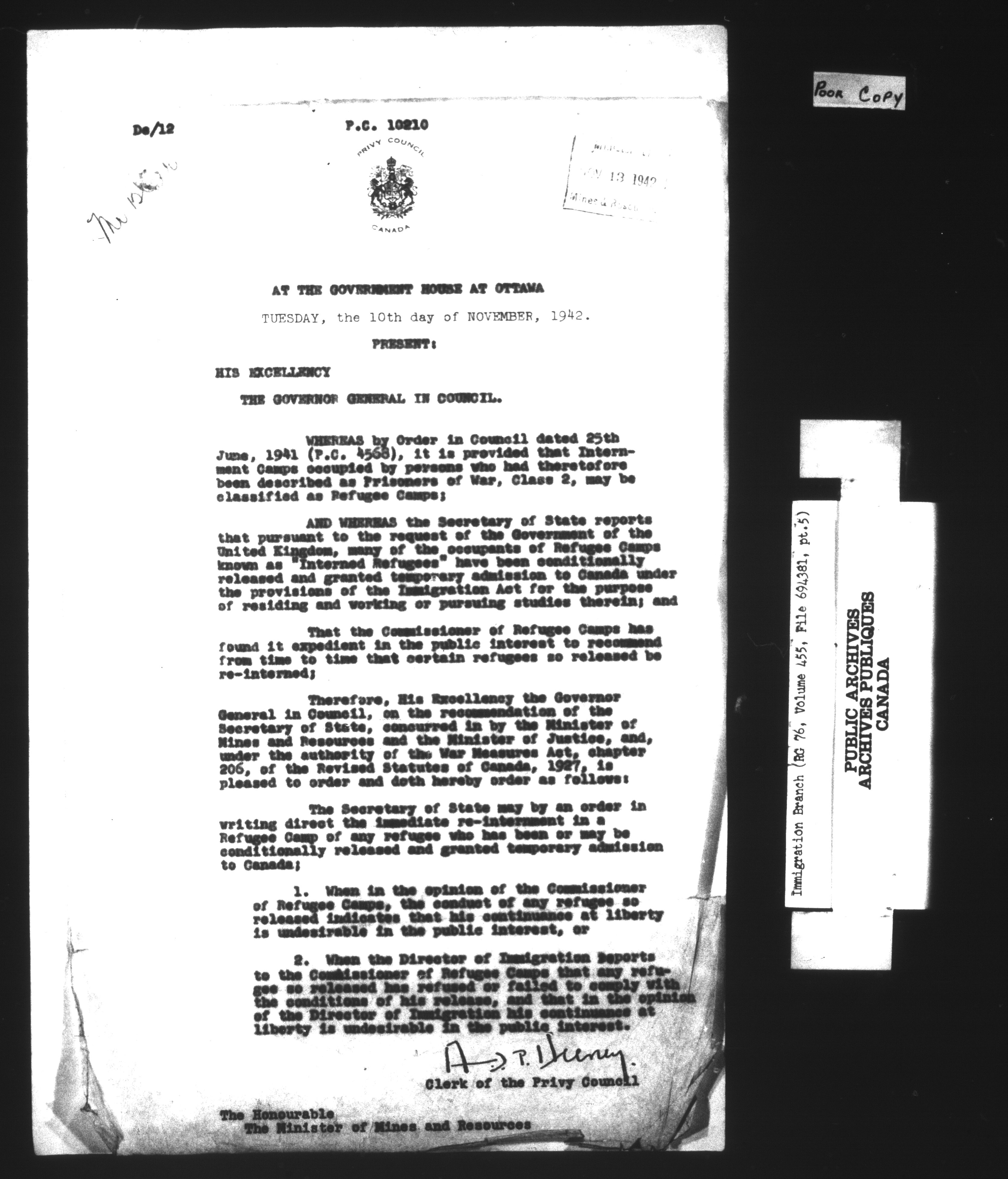 Subject, policy and case files in the First Central Registry series of the Immigration Program, 1892-1950 - 10397