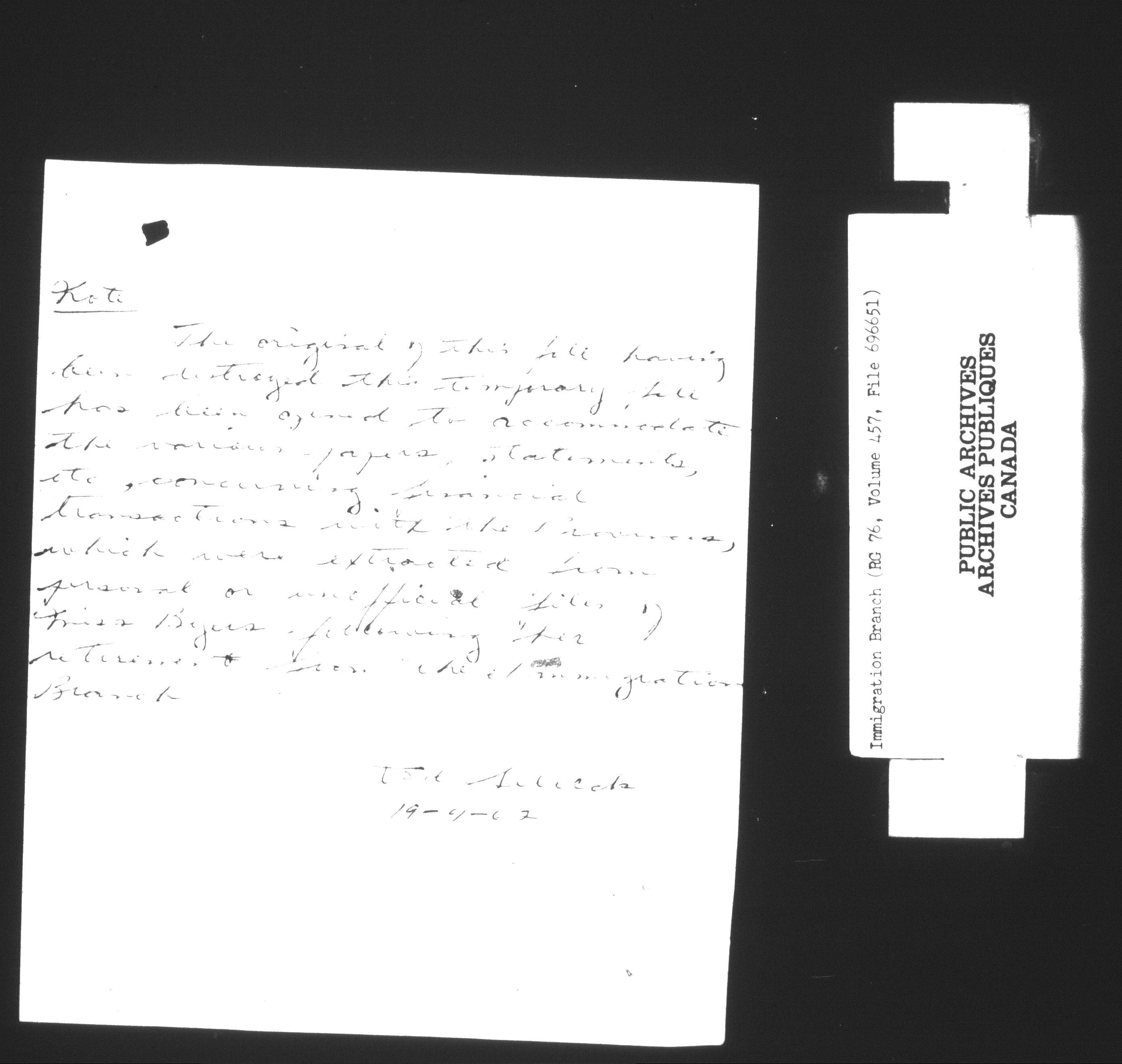 Subject, policy and case files in the First Central Registry series of the Immigration Program, 1892-1950 - 10398