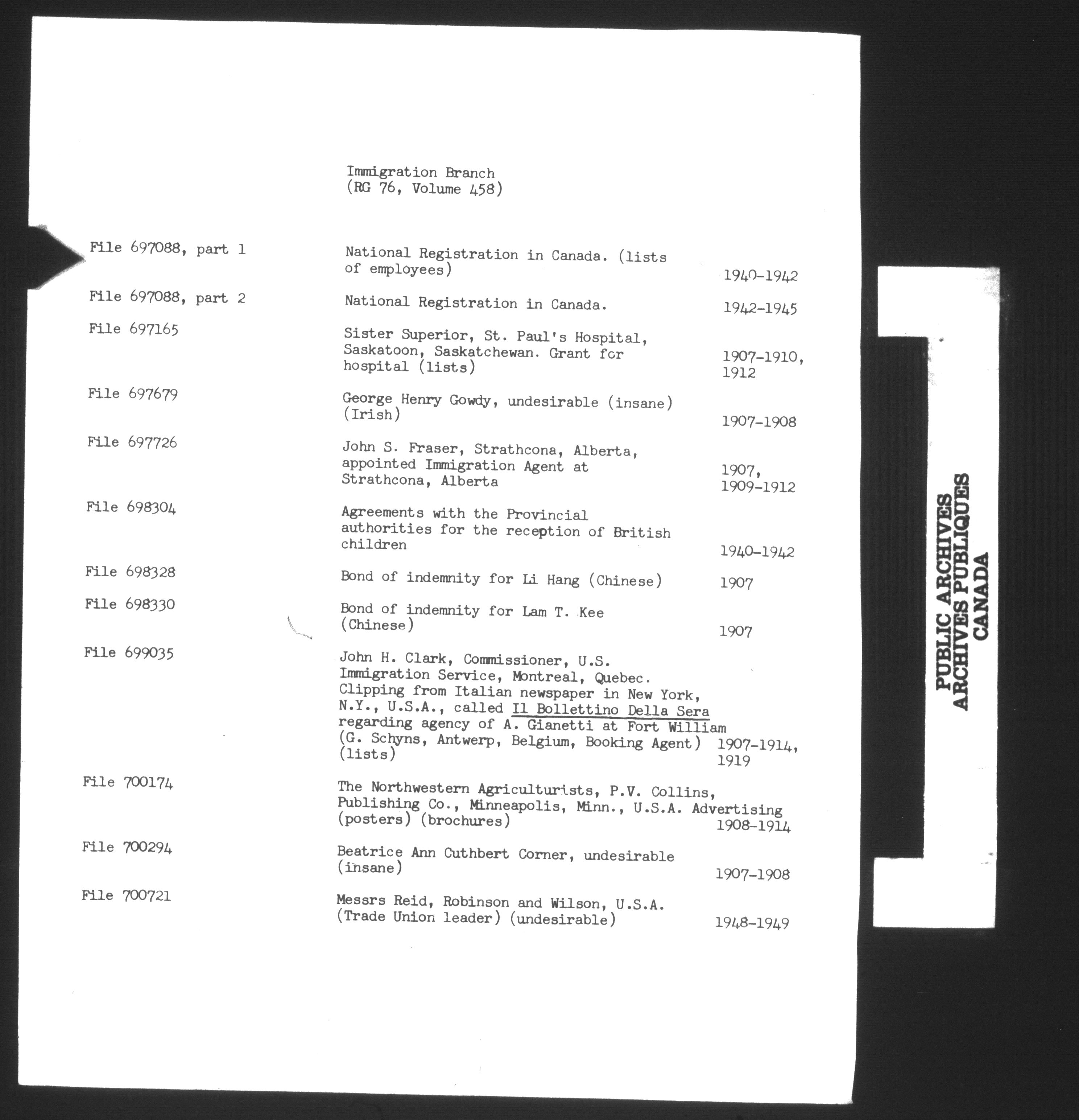 Subject, policy and case files in the First Central Registry series of the Immigration Program, 1892-1950 - 10398