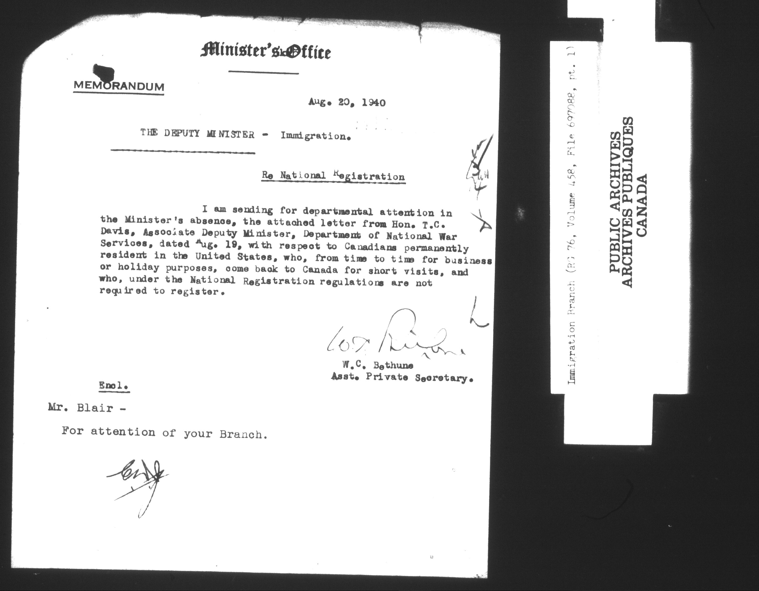 Subject, policy and case files in the First Central Registry series of the Immigration Program, 1892-1950 - 10398