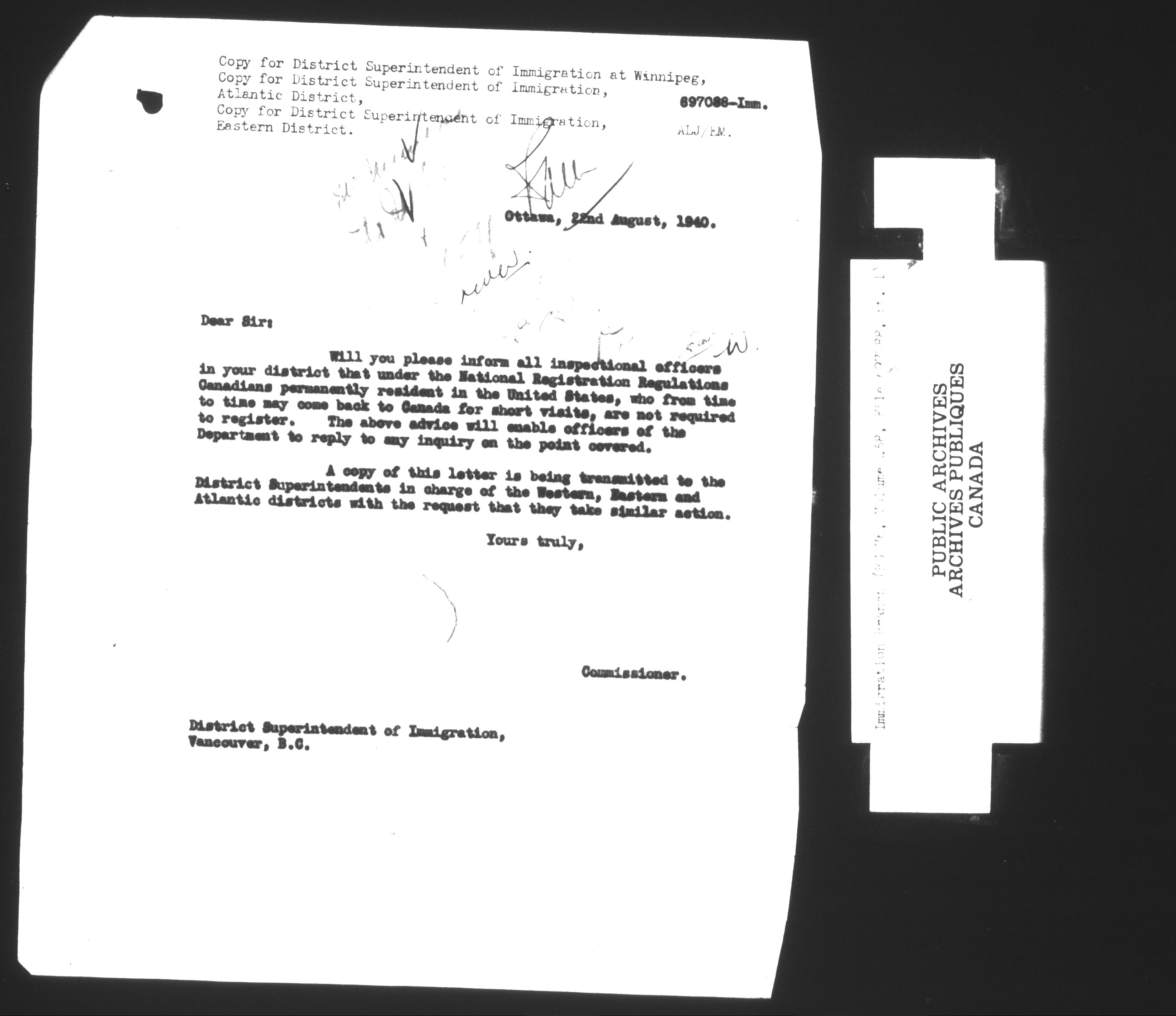 Subject, policy and case files in the First Central Registry series of the Immigration Program, 1892-1950 - 10398