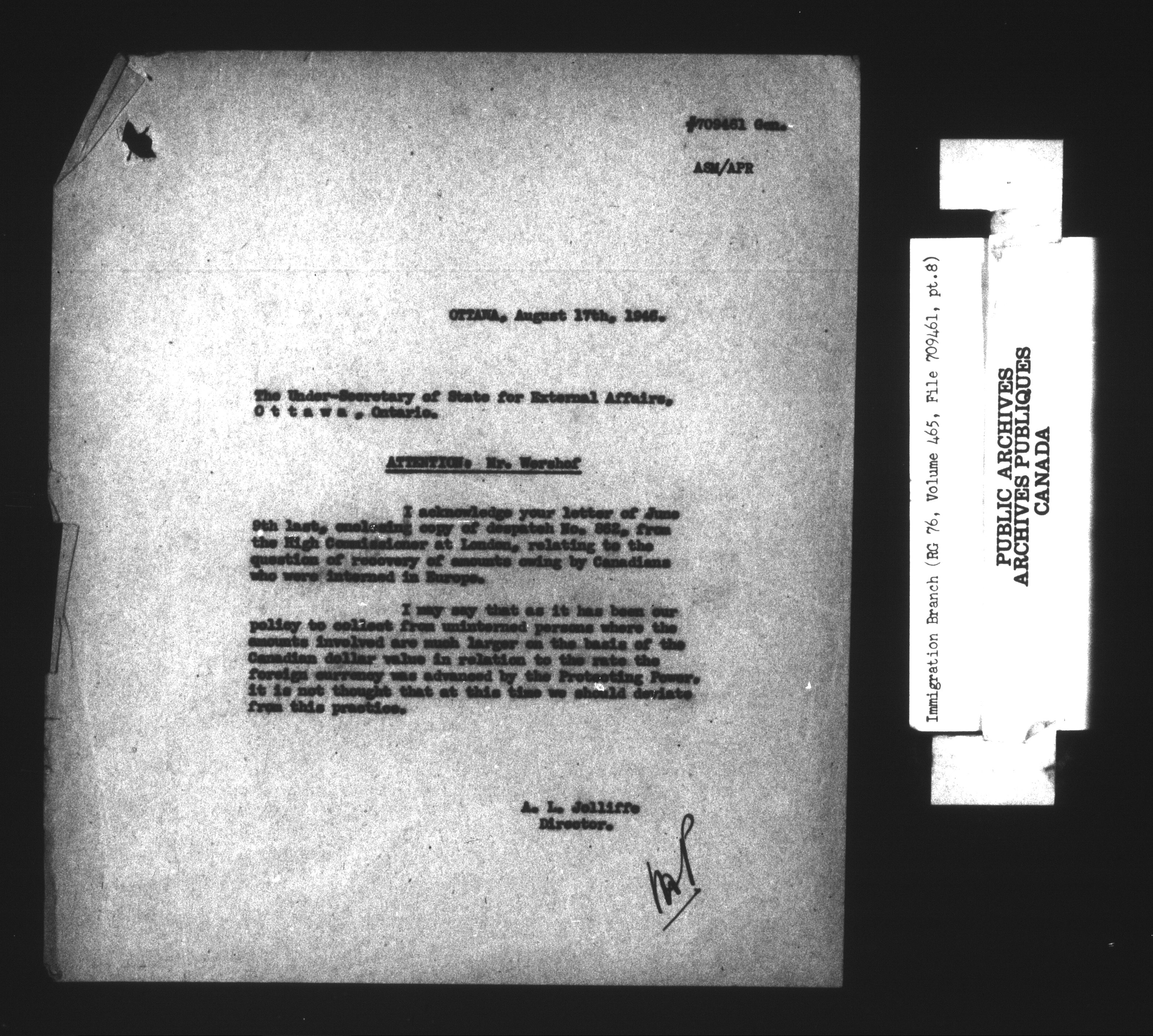 Subject, policy and case files in the First Central Registry series of the Immigration Program, 1892-1950 - 10403
