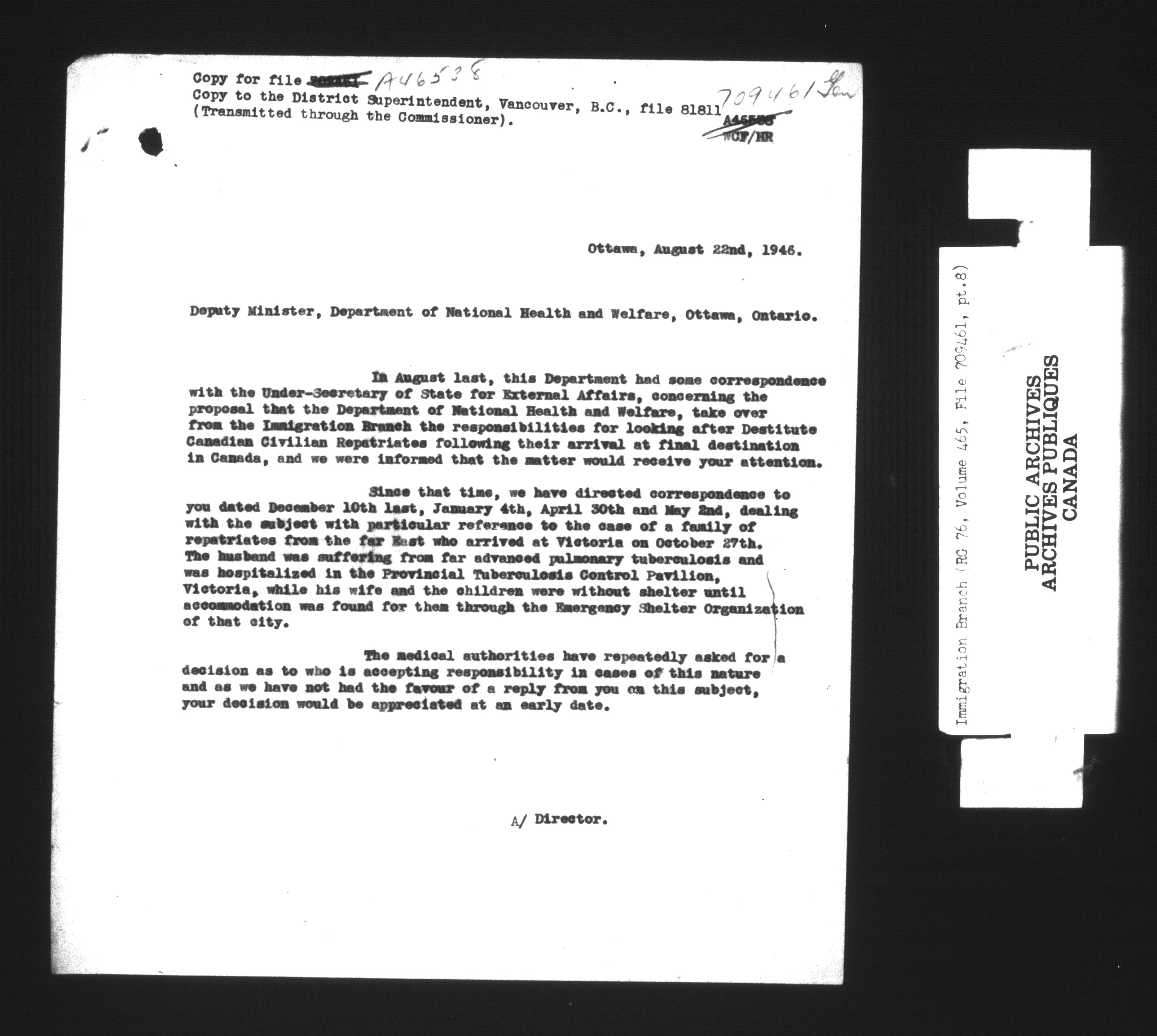 Subject, policy and case files in the First Central Registry series of the Immigration Program, 1892-1950 - 10403