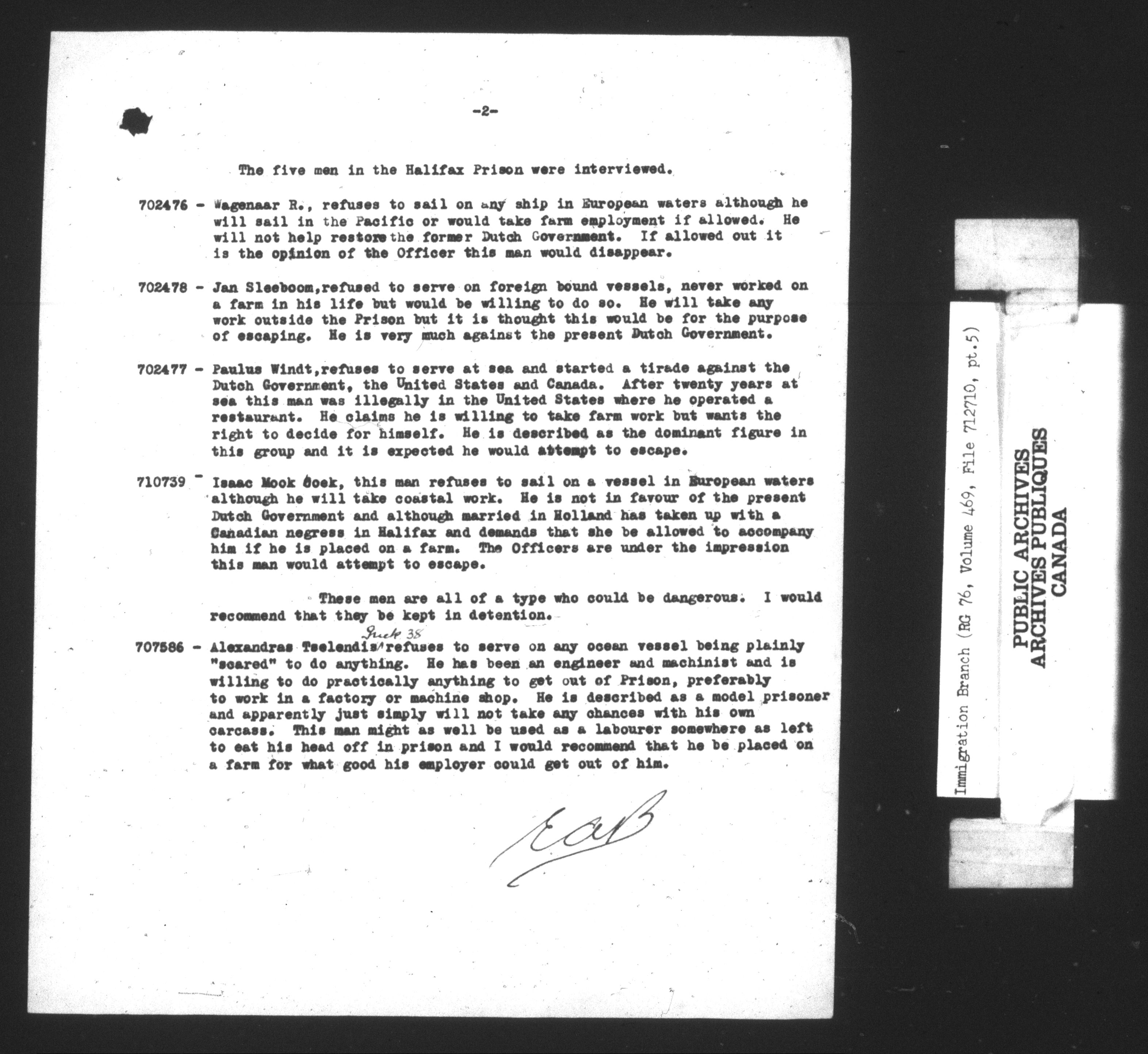 Subject, policy and case files in the First Central Registry series of the Immigration Program, 1892-1950 - 10406