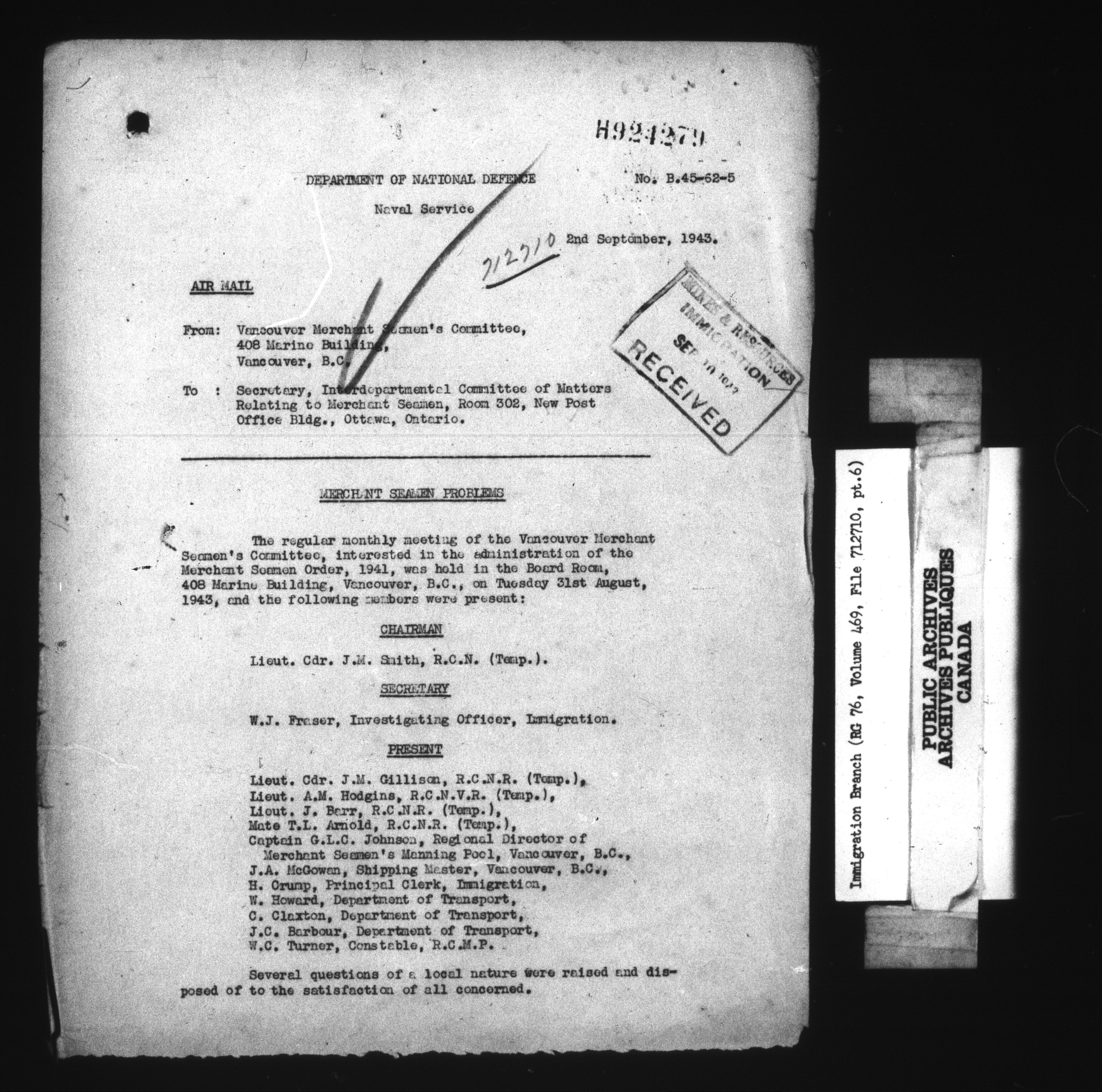 Subject, policy and case files in the First Central Registry series of the Immigration Program, 1892-1950 - 10407