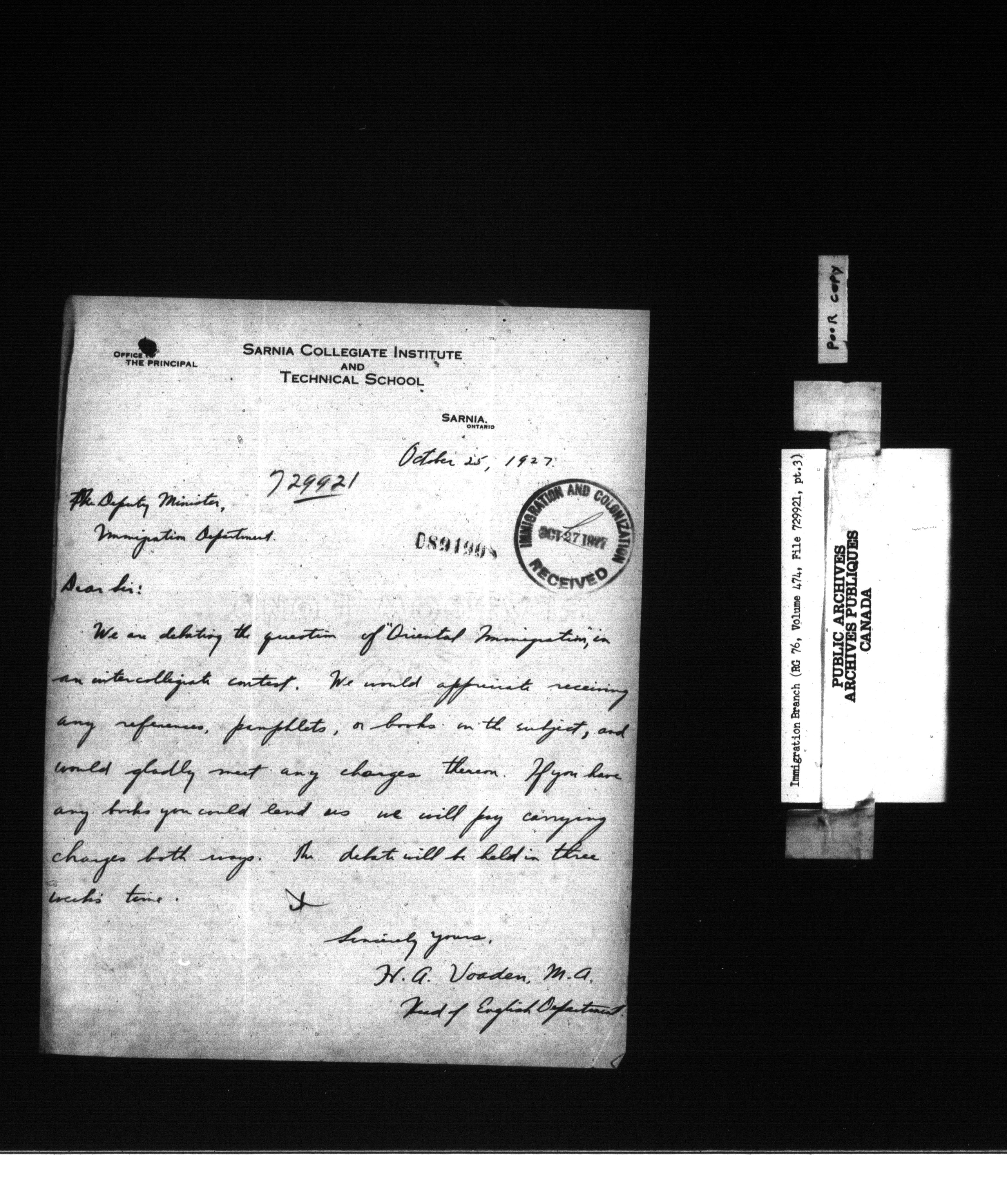 Subject, policy and case files in the First Central Registry series of the Immigration Program, 1892-1950 - 10410