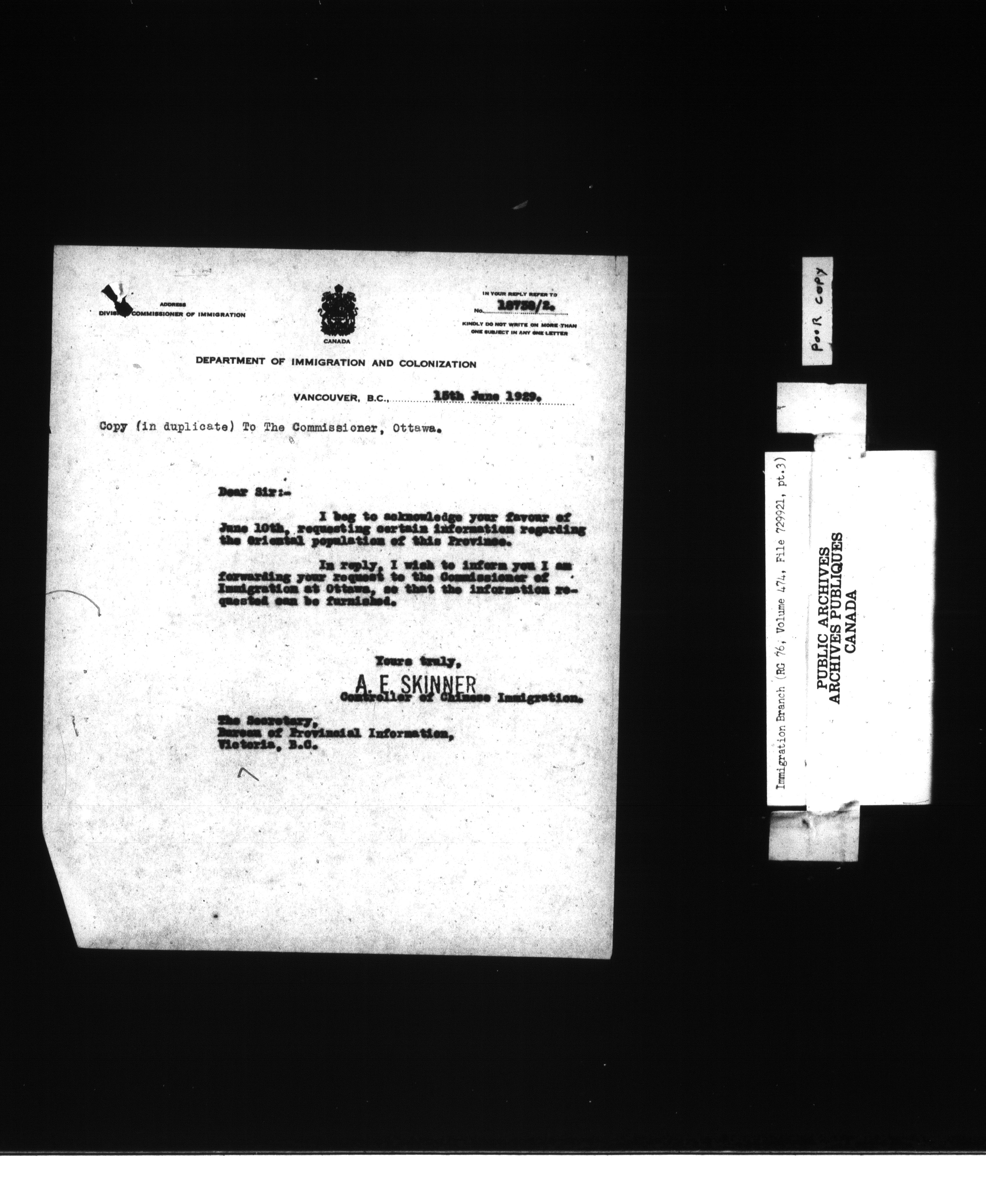 Subject, policy and case files in the First Central Registry series of the Immigration Program, 1892-1950 - 10410