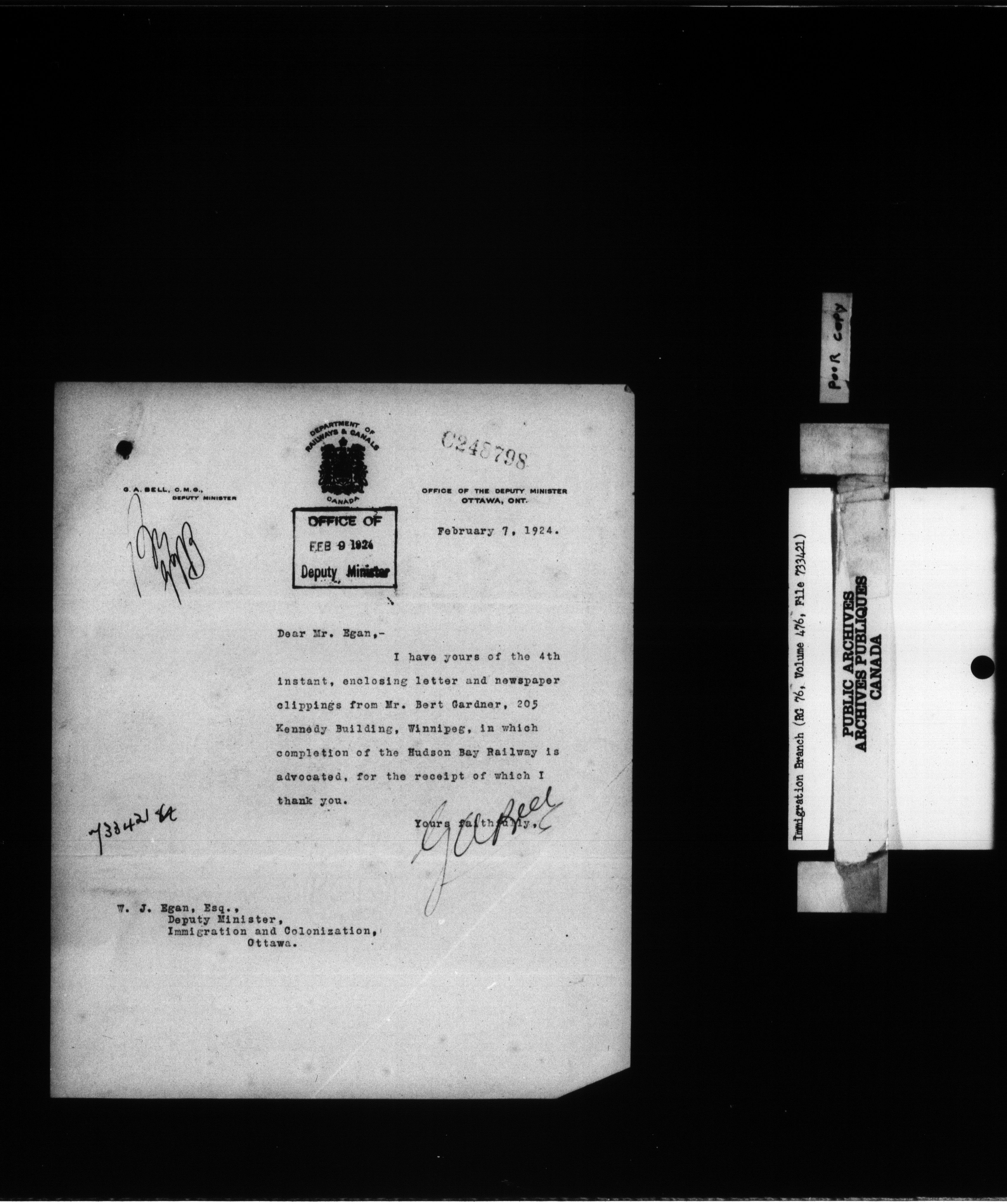Subject, policy and case files in the First Central Registry series of the Immigration Program, 1892-1950 - 10412