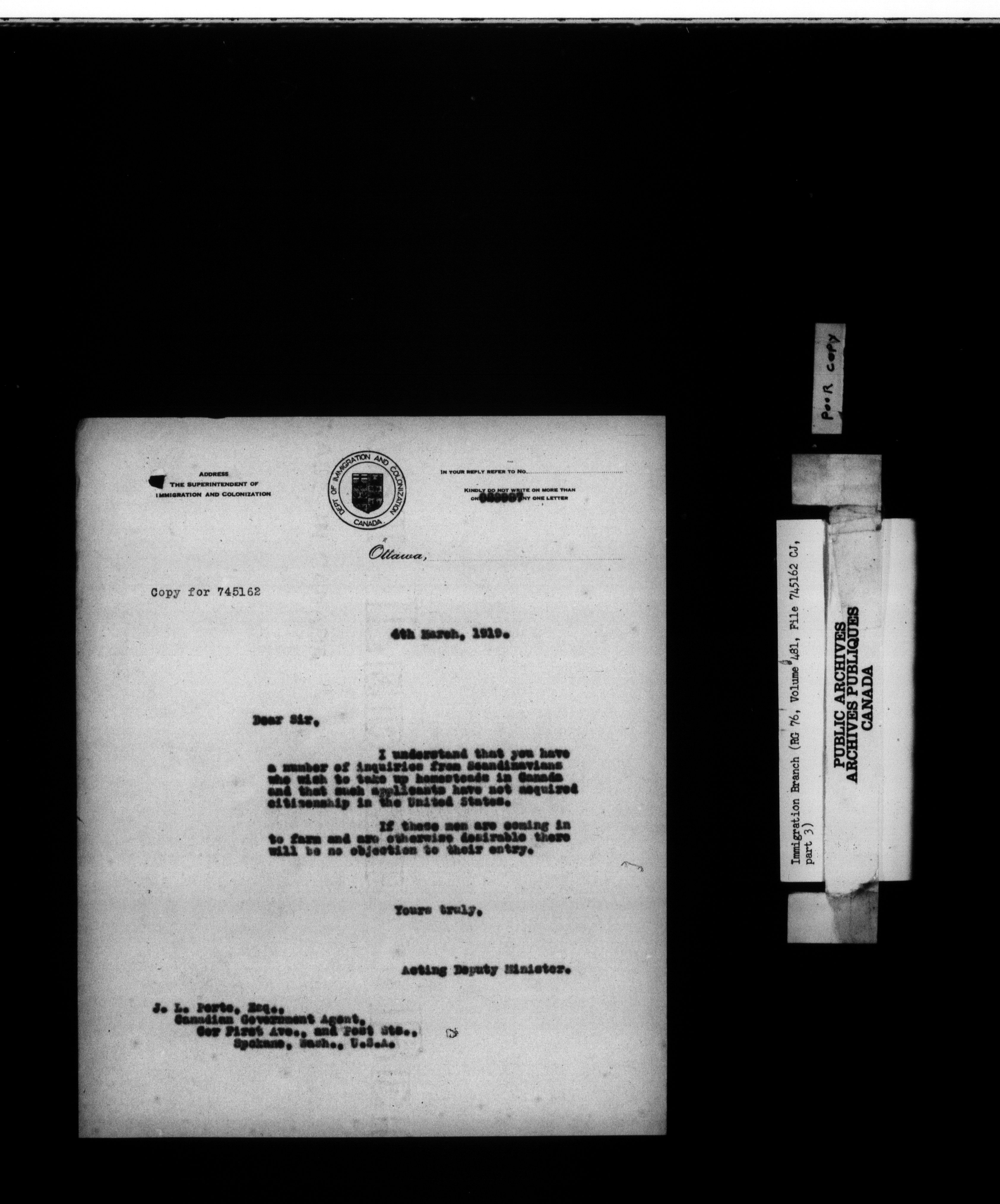Subject, policy and case files in the First Central Registry series of the Immigration Program, 1892-1950 - 10416