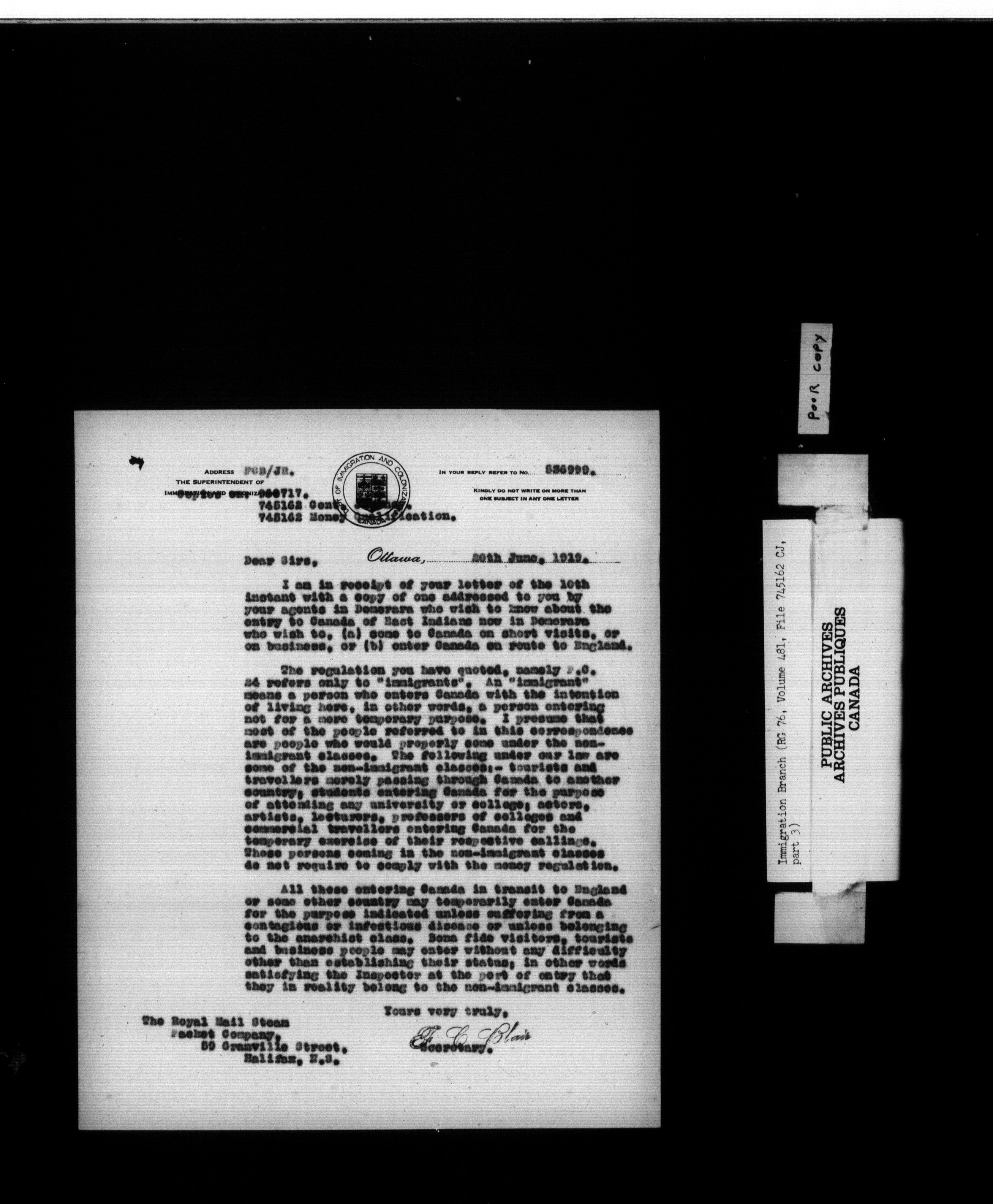 Subject, policy and case files in the First Central Registry series of the Immigration Program, 1892-1950 - 10416