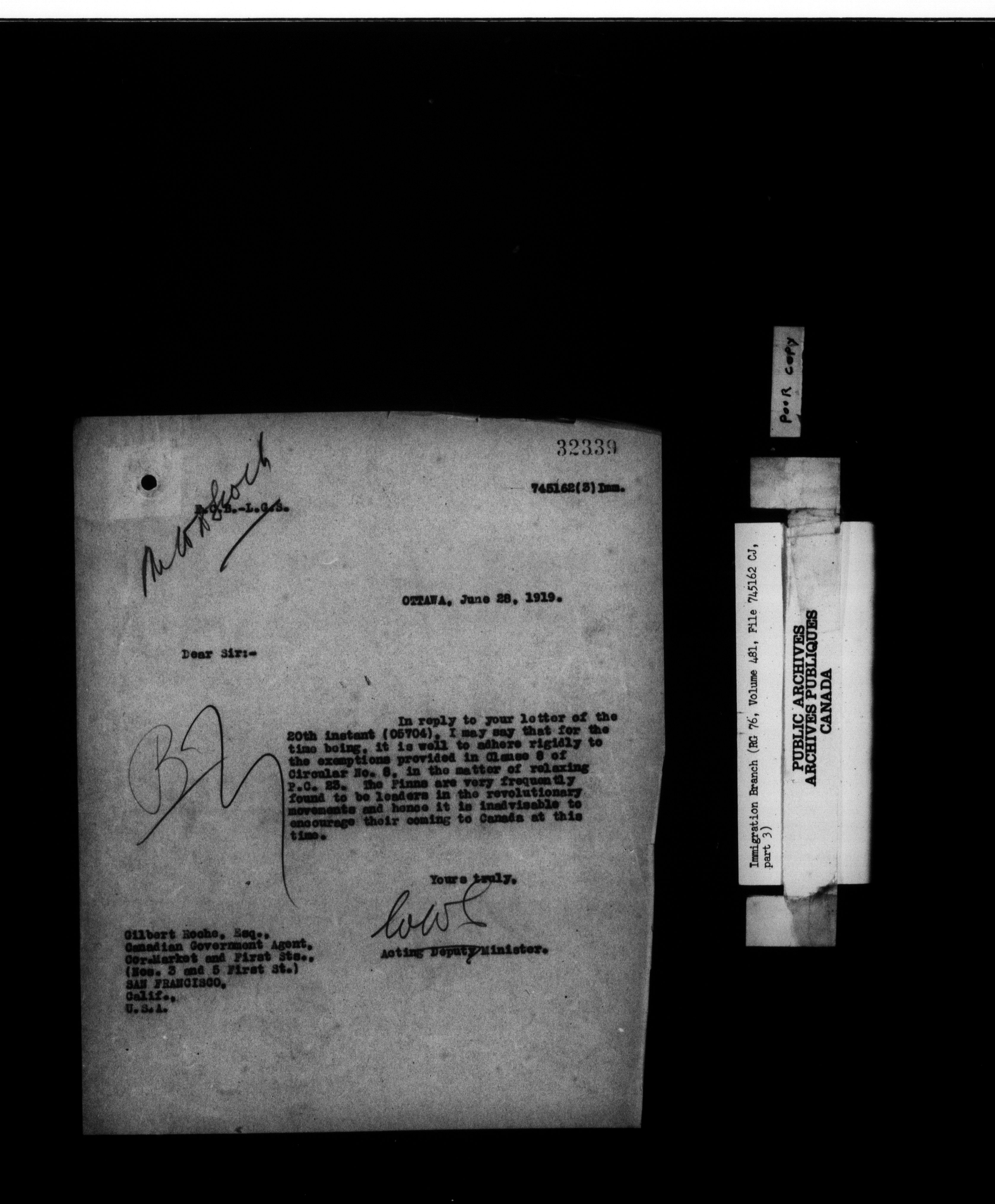 Subject, policy and case files in the First Central Registry series of the Immigration Program, 1892-1950 - 10416