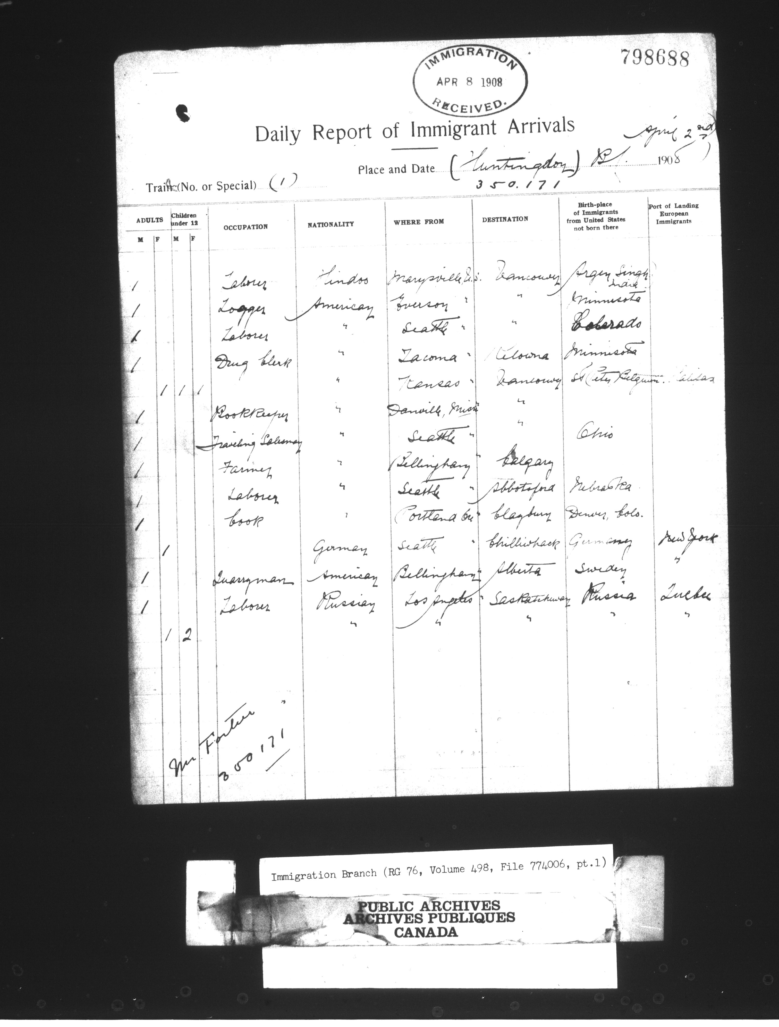 Subject, policy and case files in the First Central Registry series of the Immigration Program, 1892-1950 - 10430