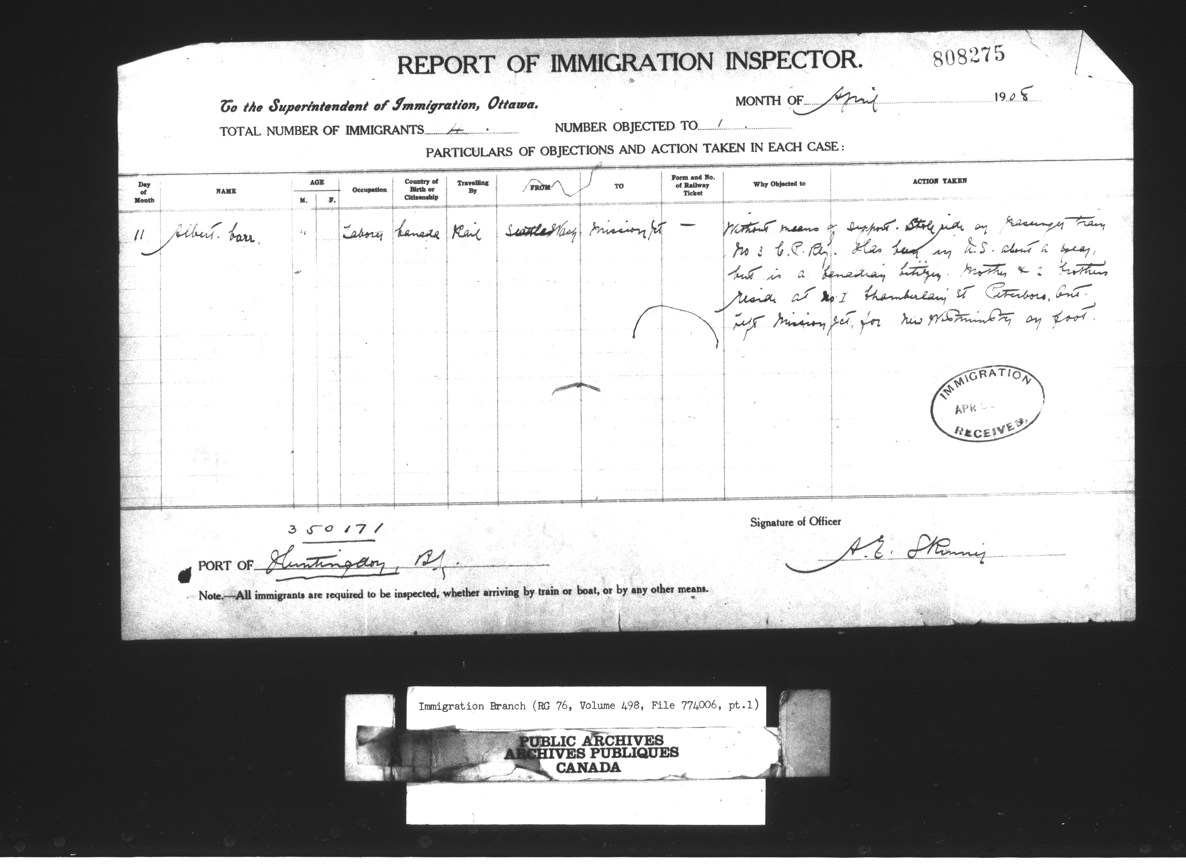Subject, policy and case files in the First Central Registry series of the Immigration Program, 1892-1950 - 10430