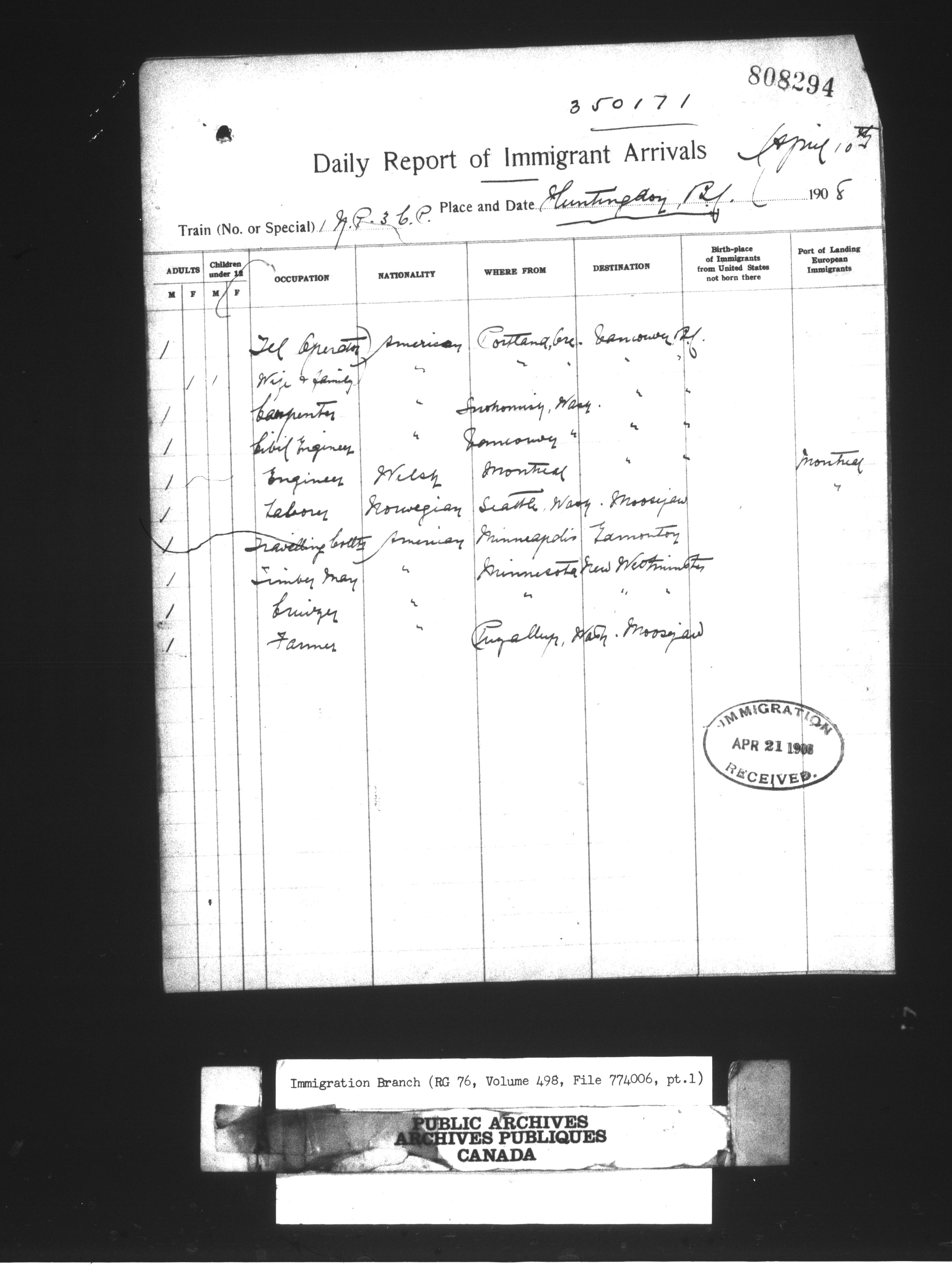 Subject, policy and case files in the First Central Registry series of the Immigration Program, 1892-1950 - 10430