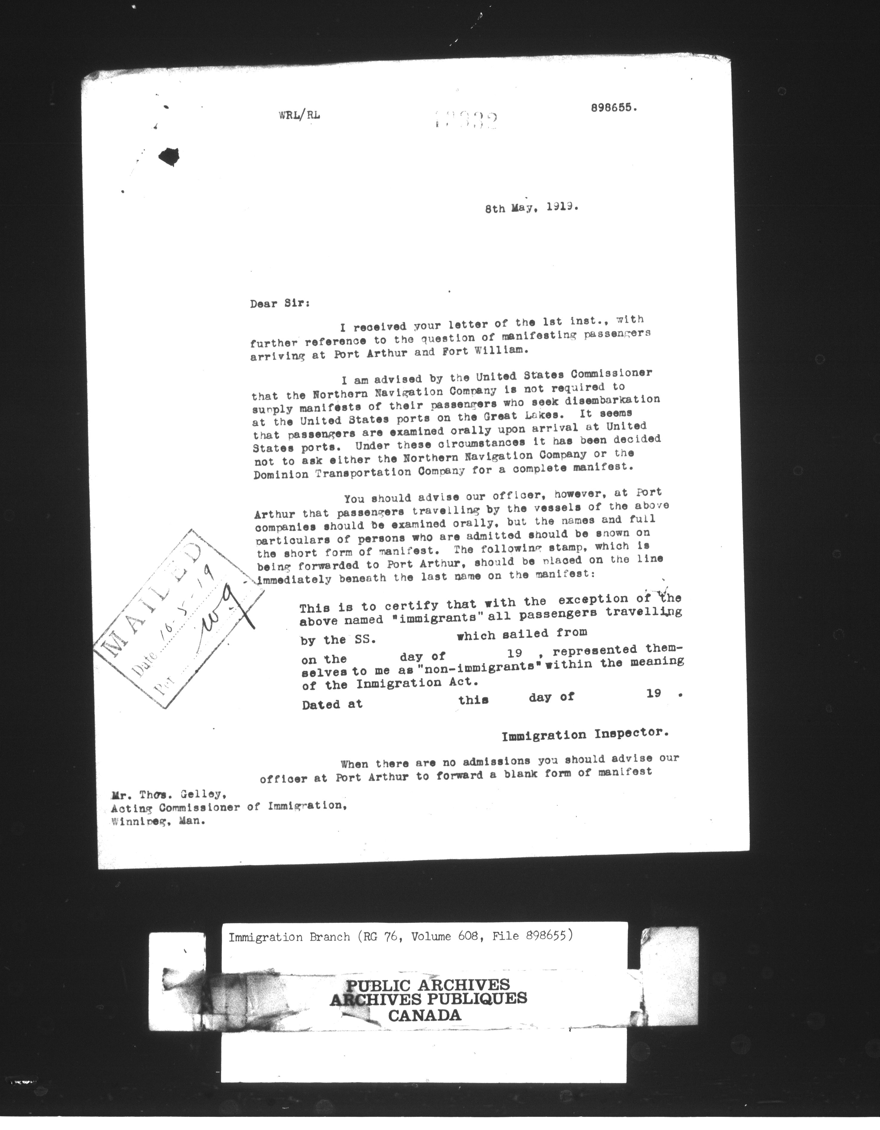 Subject, policy and case files in the First Central Registry series of the Immigration Program, 1892-1950 - 10431