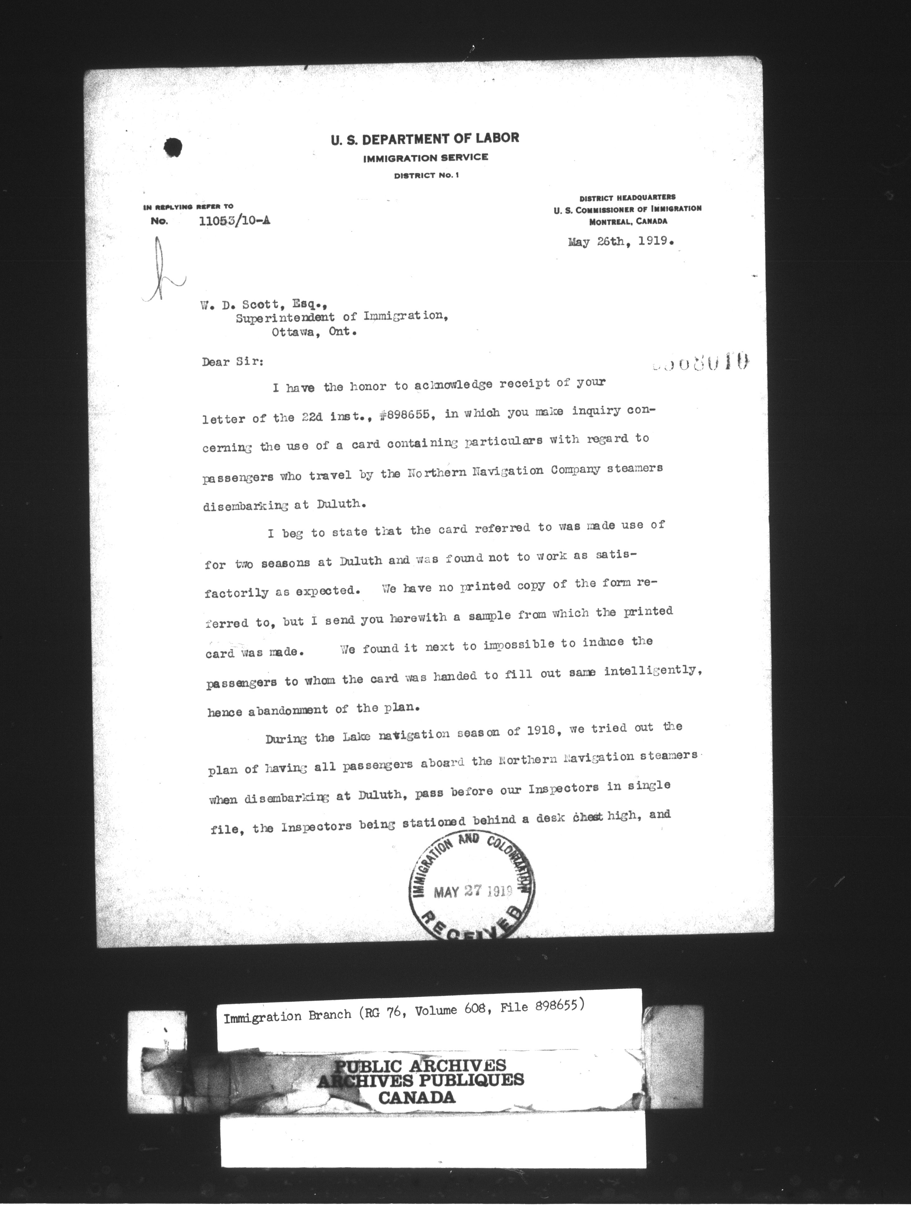 Subject, policy and case files in the First Central Registry series of the Immigration Program, 1892-1950 - 10431