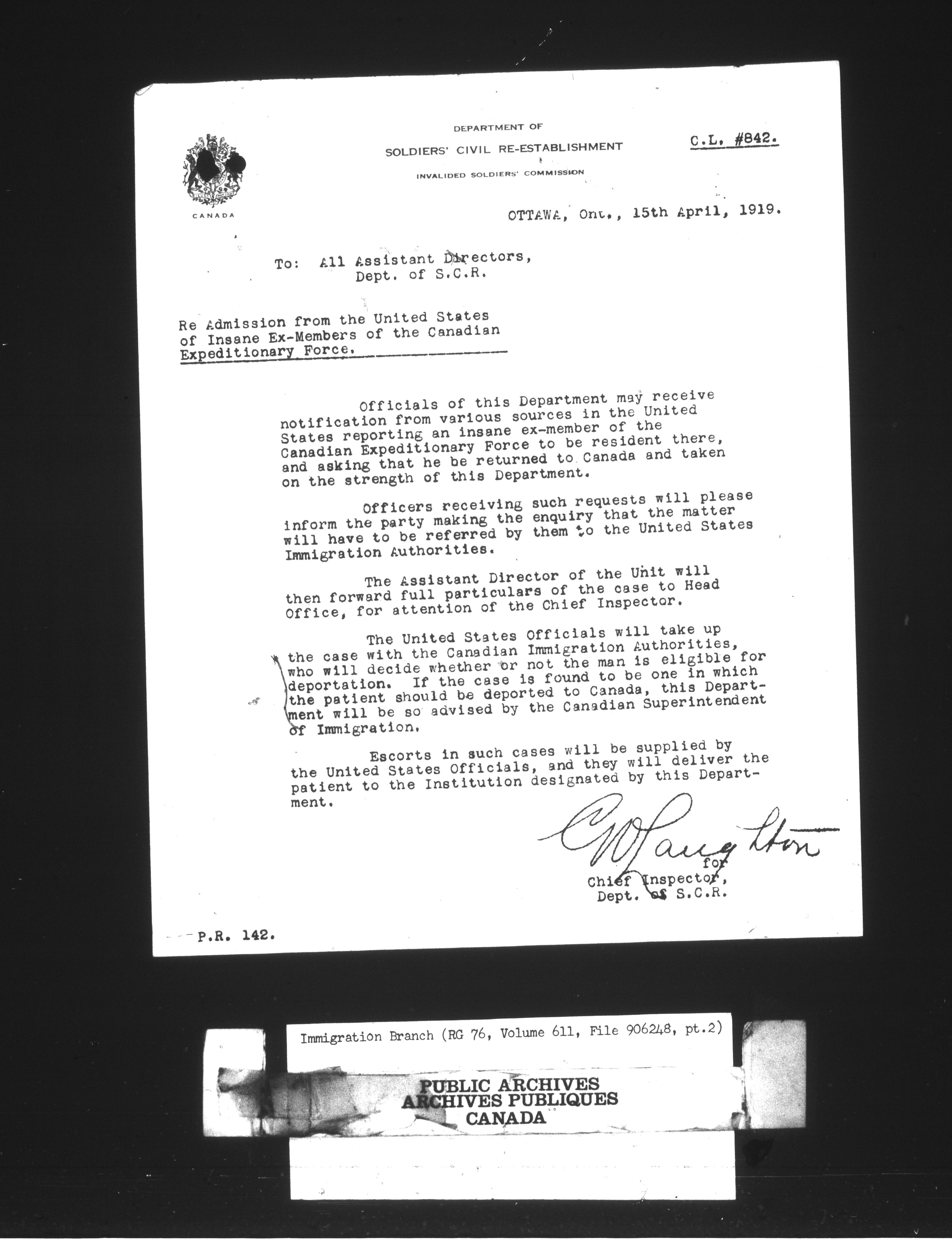 Subject, policy and case files in the First Central Registry series of the Immigration Program, 1892-1950 - 10432