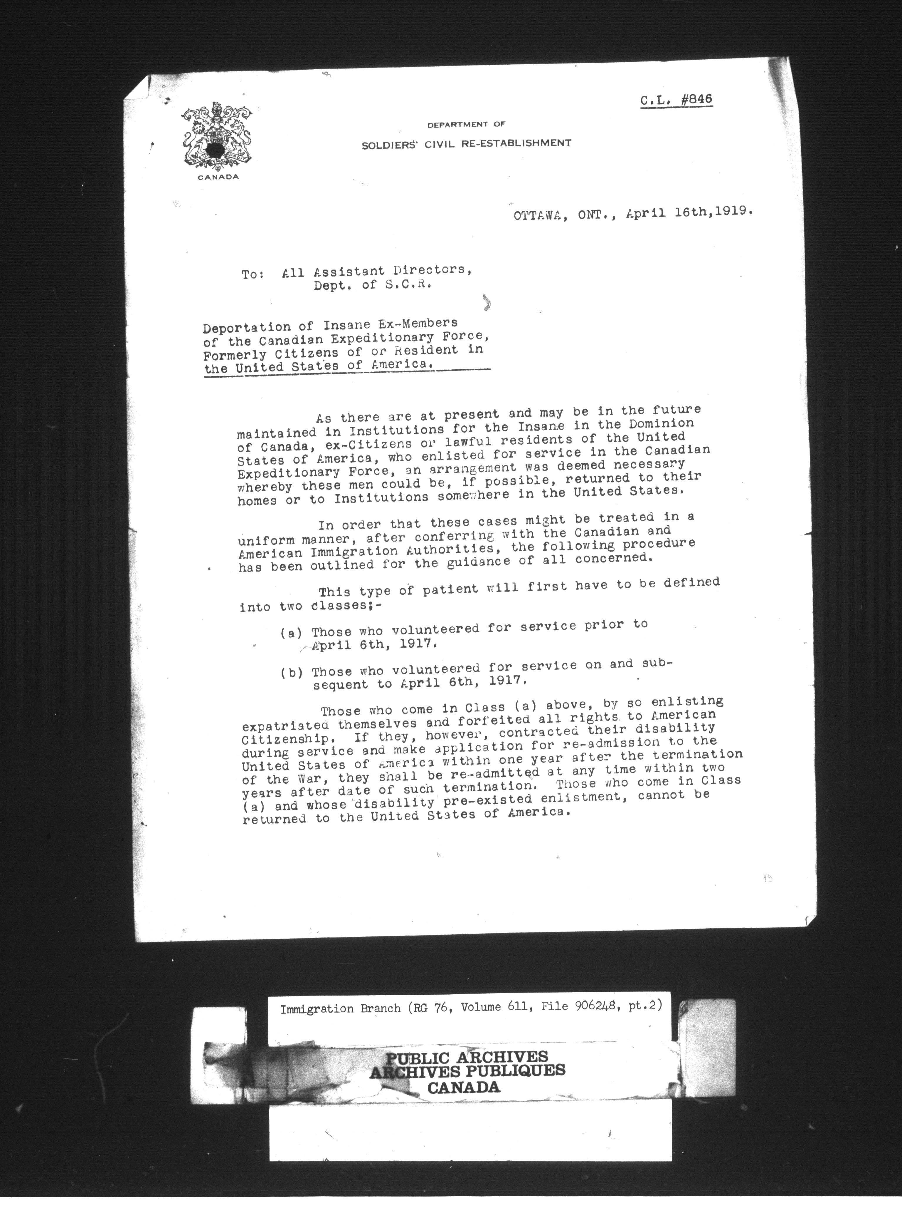 Subject, policy and case files in the First Central Registry series of the Immigration Program, 1892-1950 - 10432