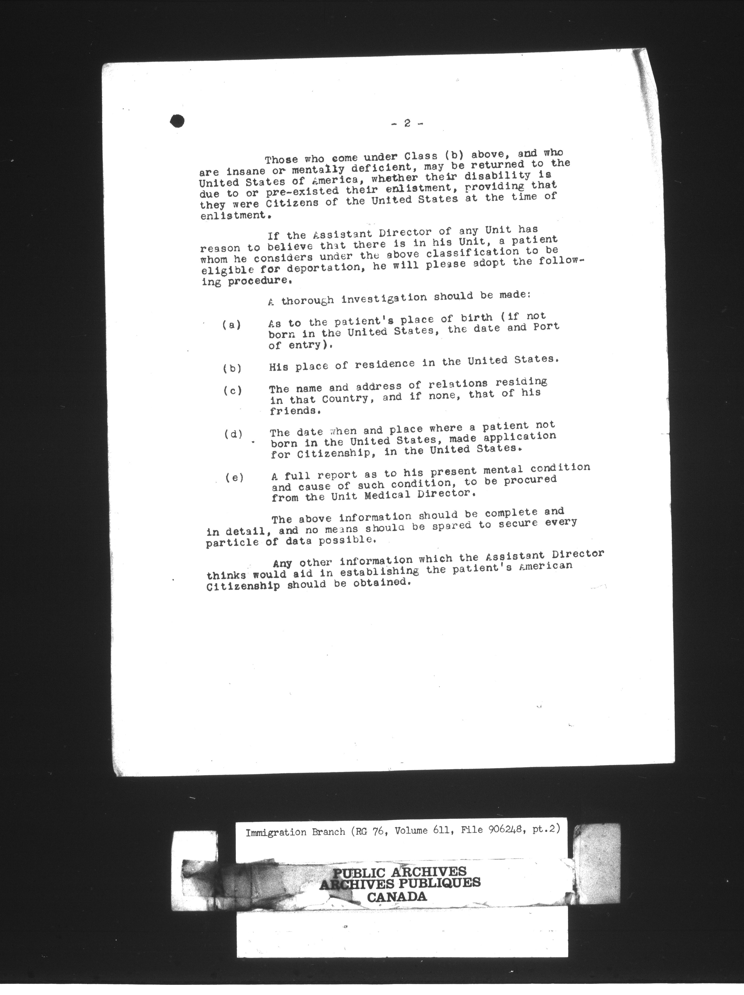 Subject, policy and case files in the First Central Registry series of the Immigration Program, 1892-1950 - 10432