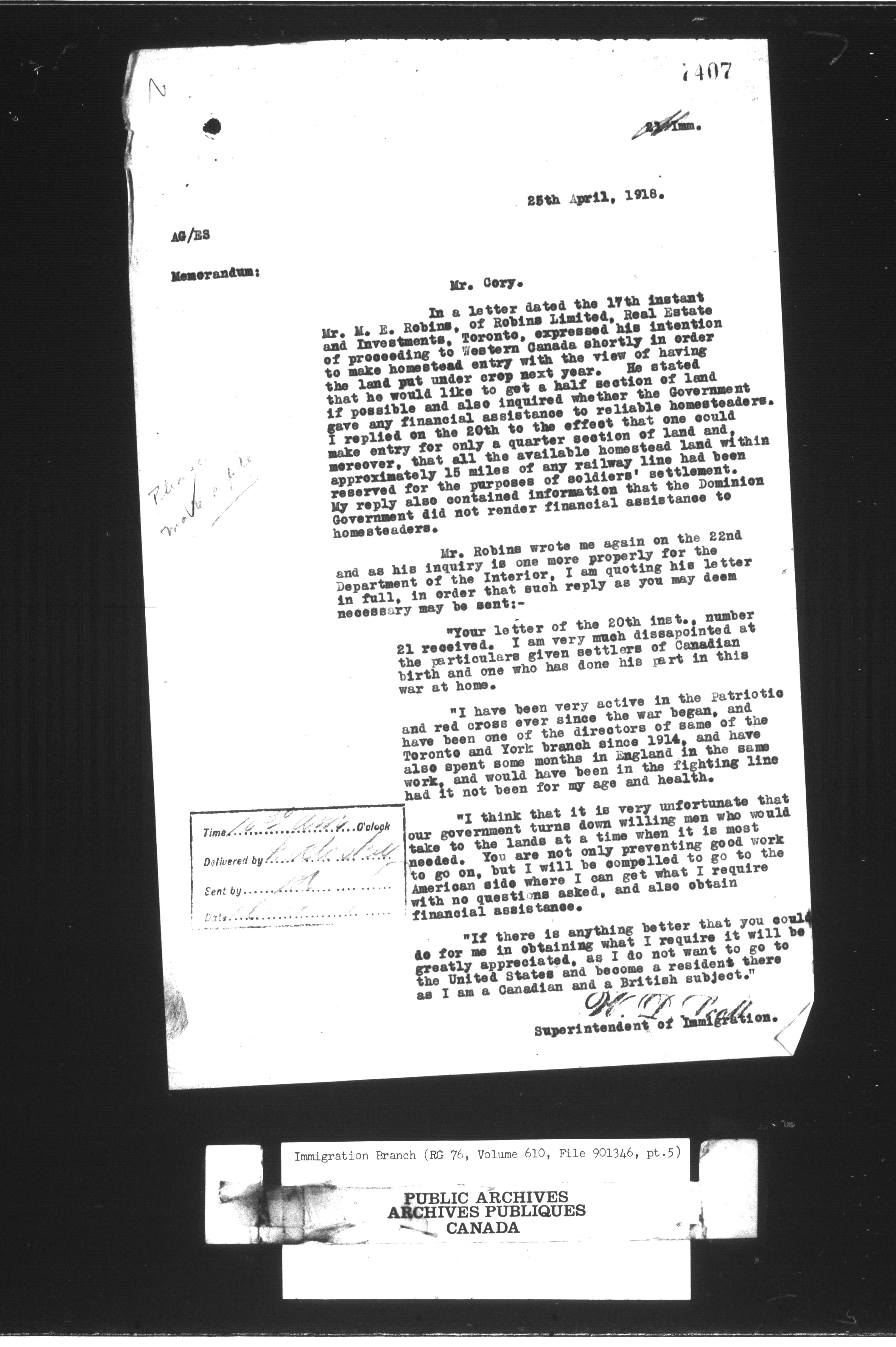 Subject, policy and case files in the First Central Registry series of the Immigration Program, 1892-1950 - 10432