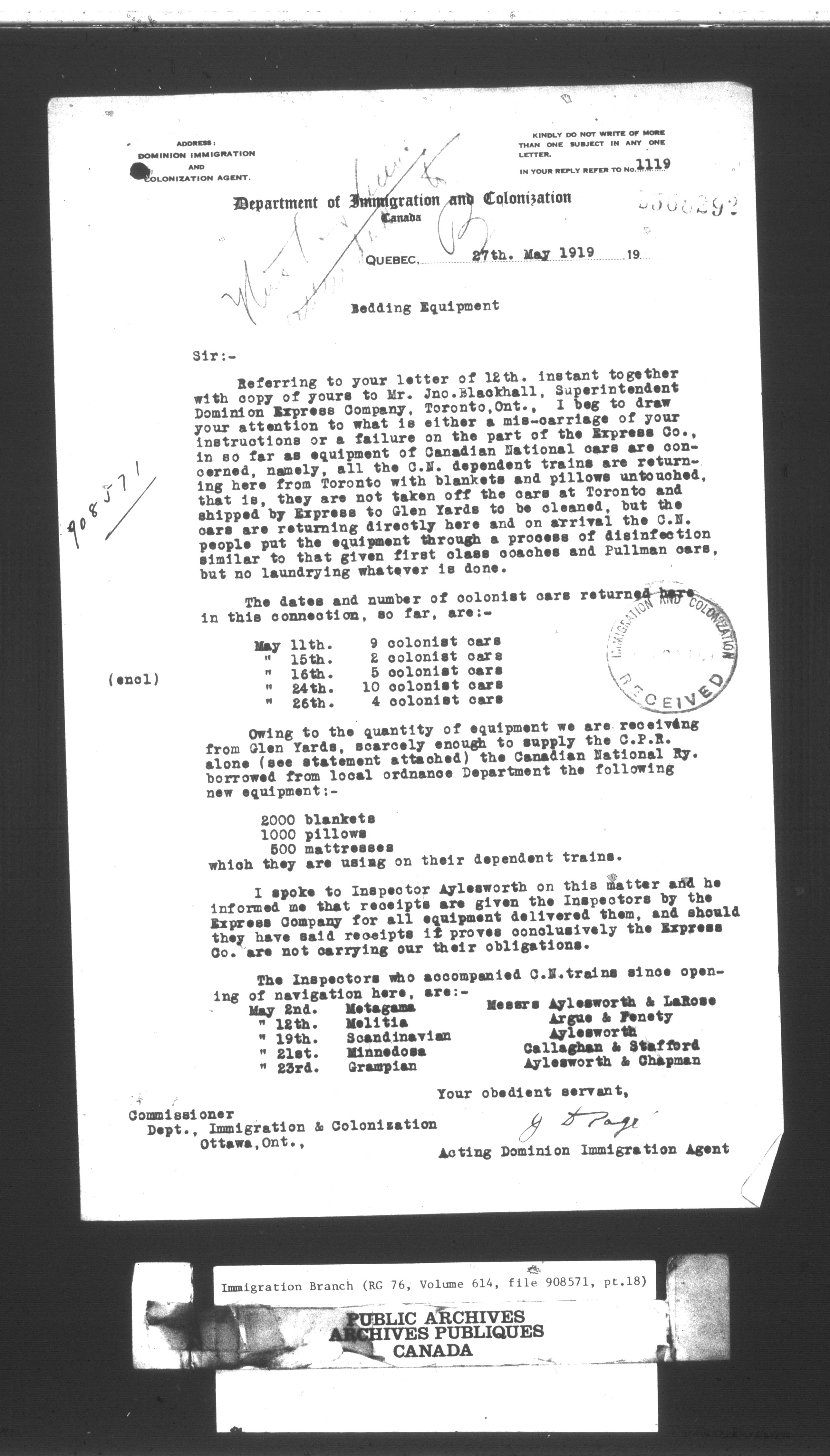 Subject, policy and case files in the First Central Registry series of the Immigration Program, 1892-1950 - 10434