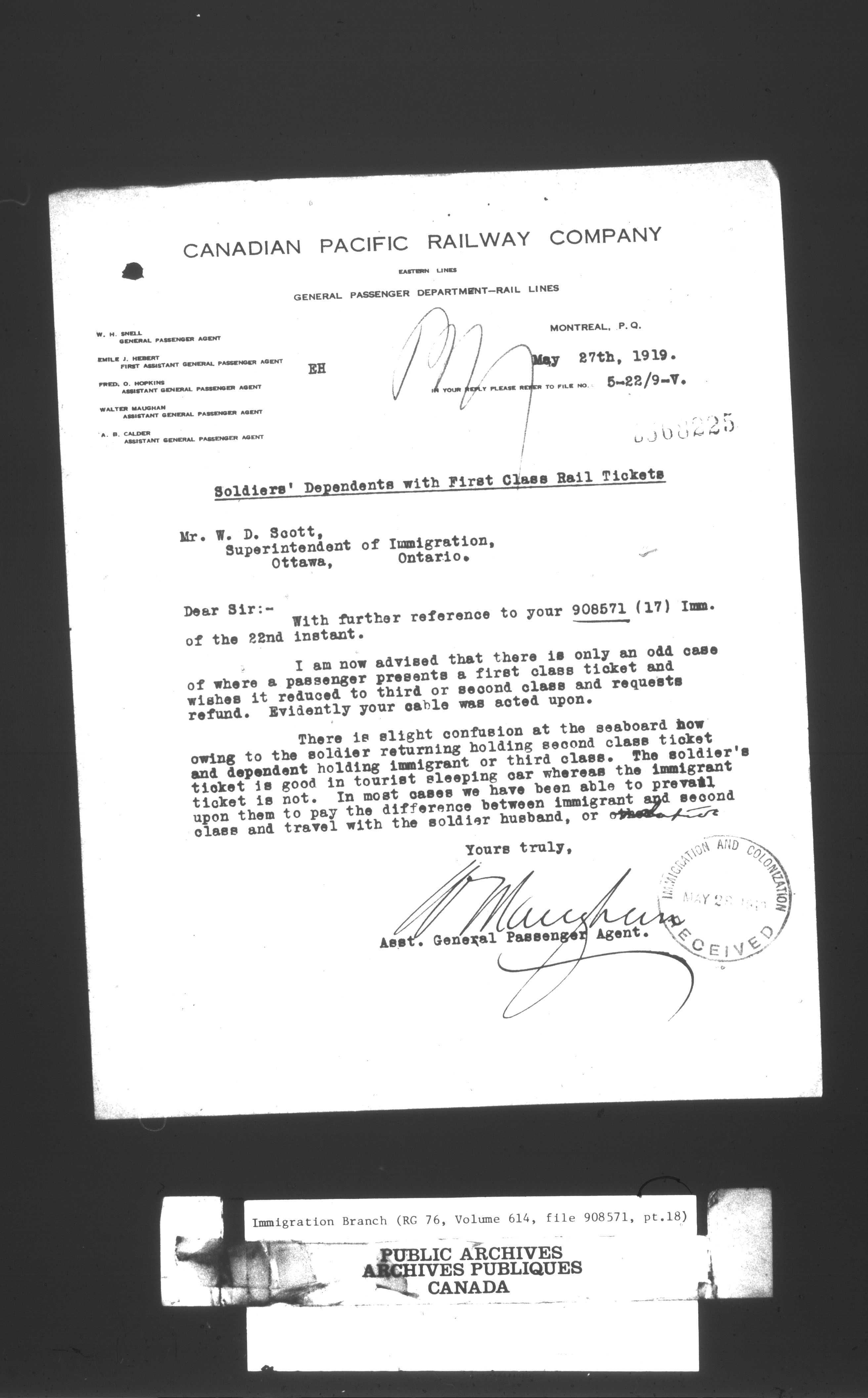 Subject, policy and case files in the First Central Registry series of the Immigration Program, 1892-1950 - 10434