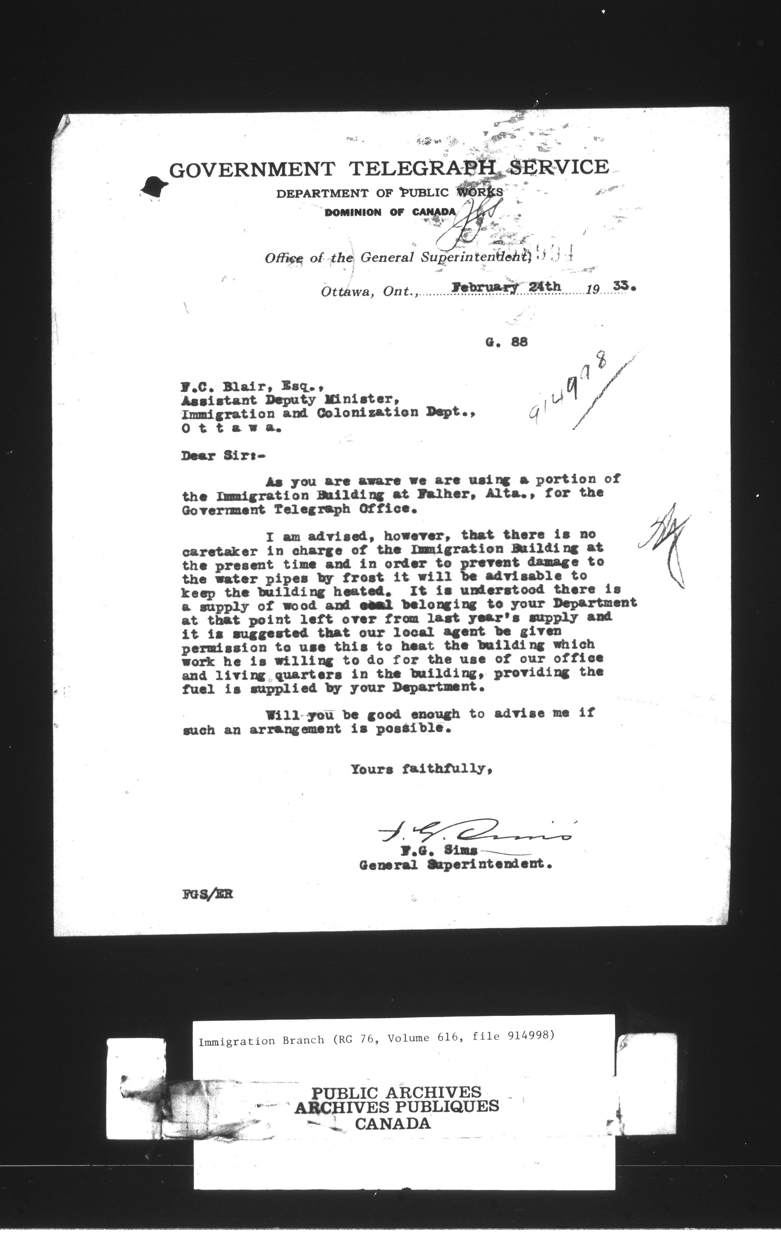Subject, policy and case files in the First Central Registry series of the Immigration Program, 1892-1950 - 10435
