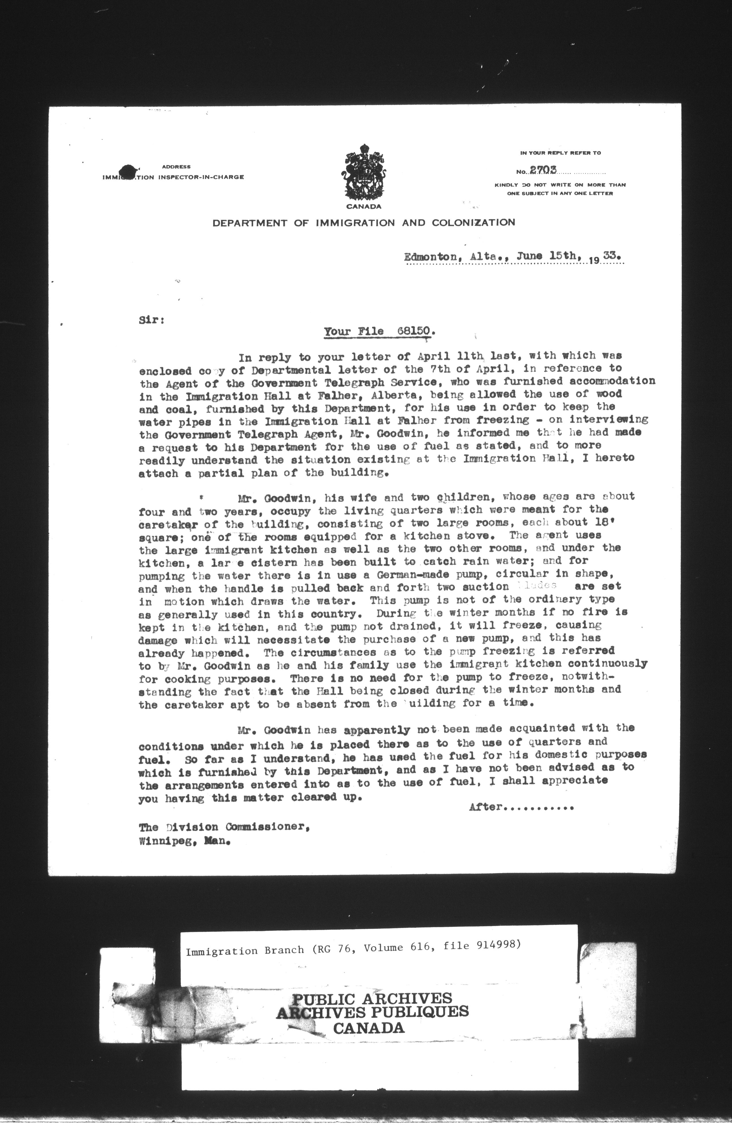 Subject, policy and case files in the First Central Registry series of the Immigration Program, 1892-1950 - 10435