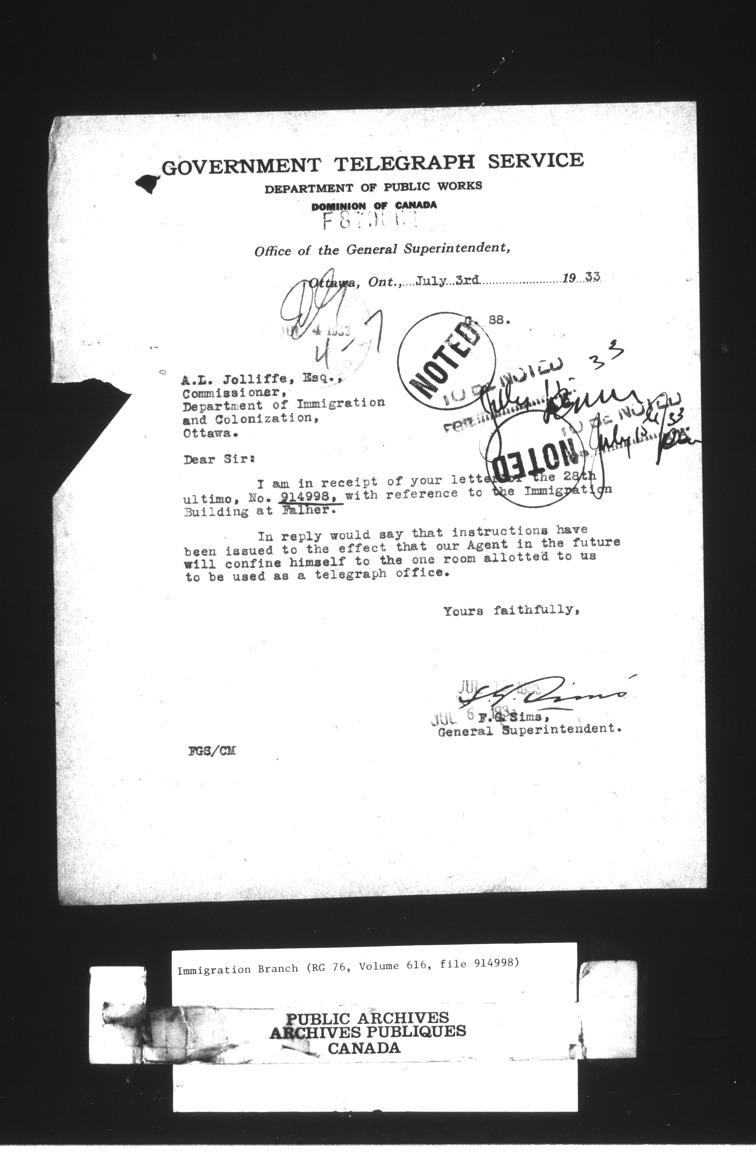 Subject, policy and case files in the First Central Registry series of the Immigration Program, 1892-1950 - 10435