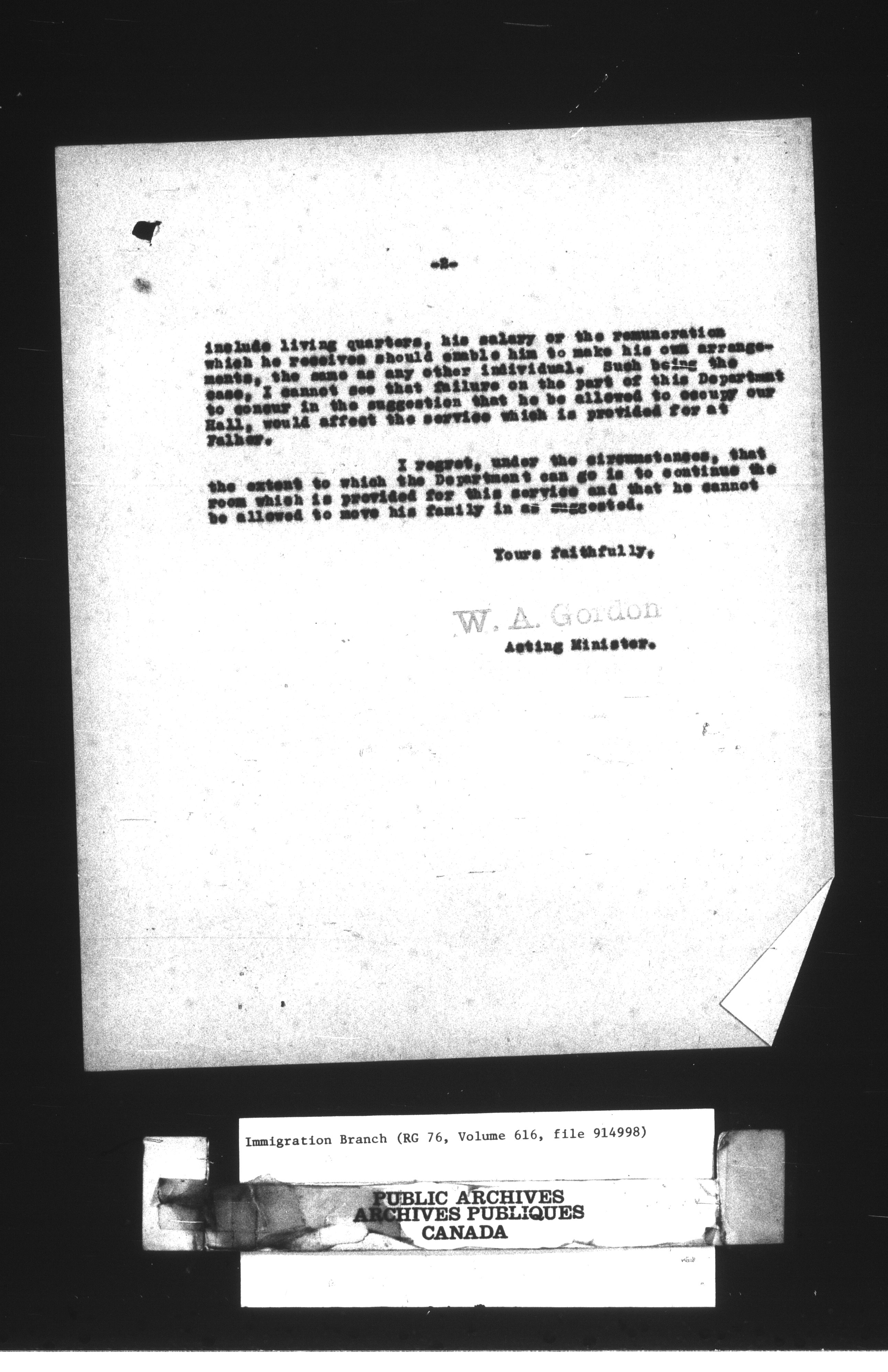 Subject, policy and case files in the First Central Registry series of the Immigration Program, 1892-1950 - 10435