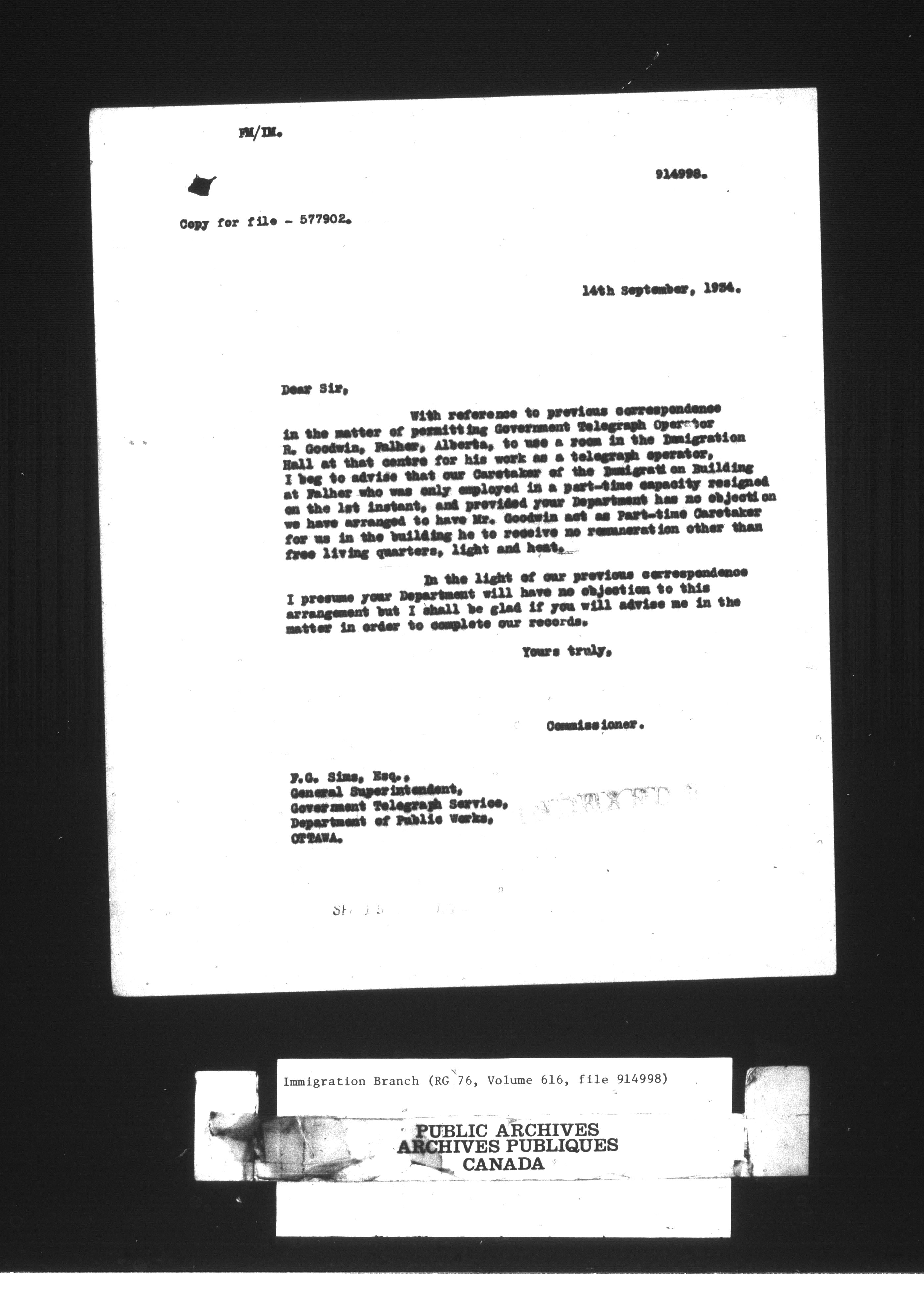 Subject, policy and case files in the First Central Registry series of the Immigration Program, 1892-1950 - 10436