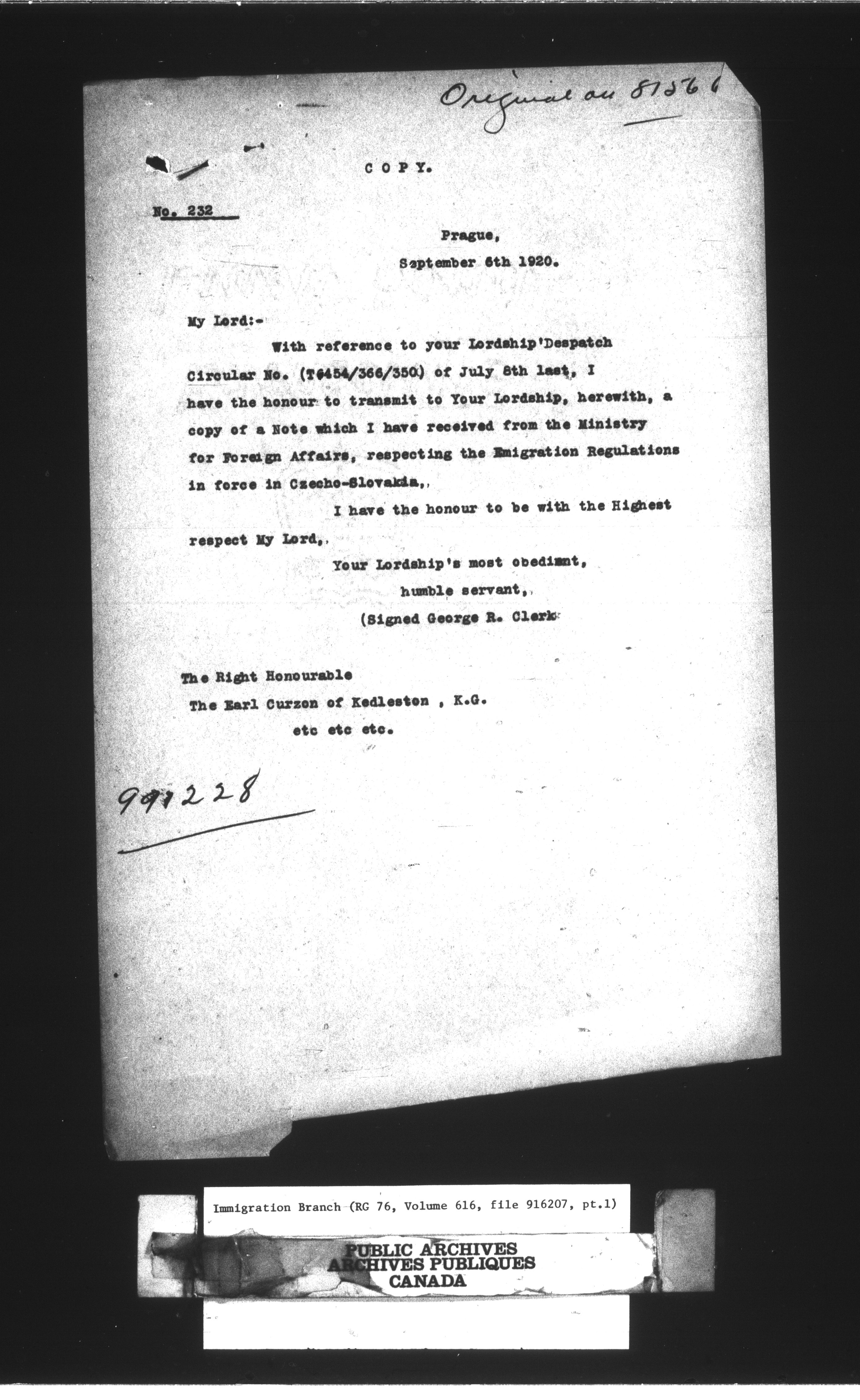 Subject, policy and case files in the First Central Registry series of the Immigration Program, 1892-1950 - 10436