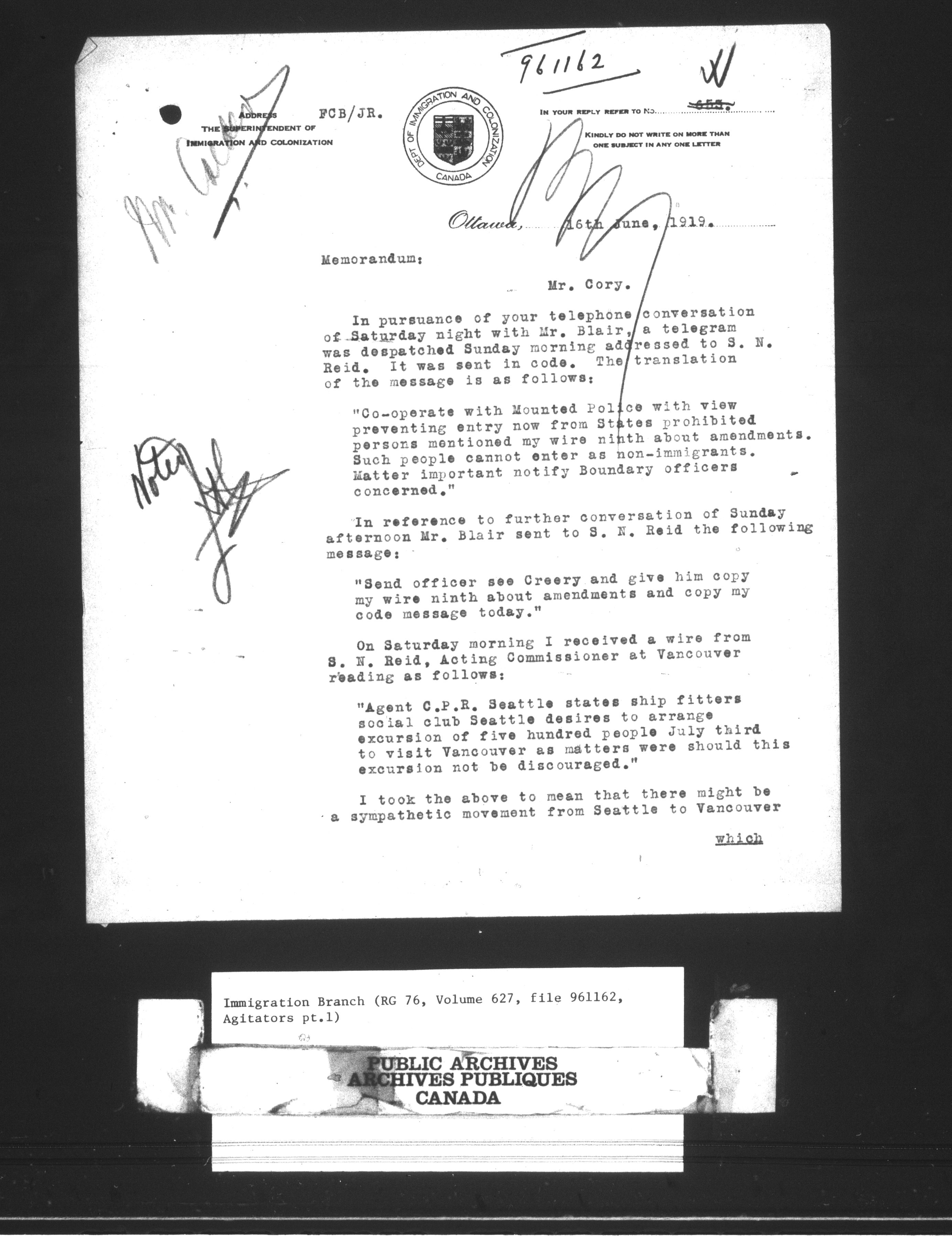 Subject, policy and case files in the First Central Registry series of the Immigration Program, 1892-1950 - 10442