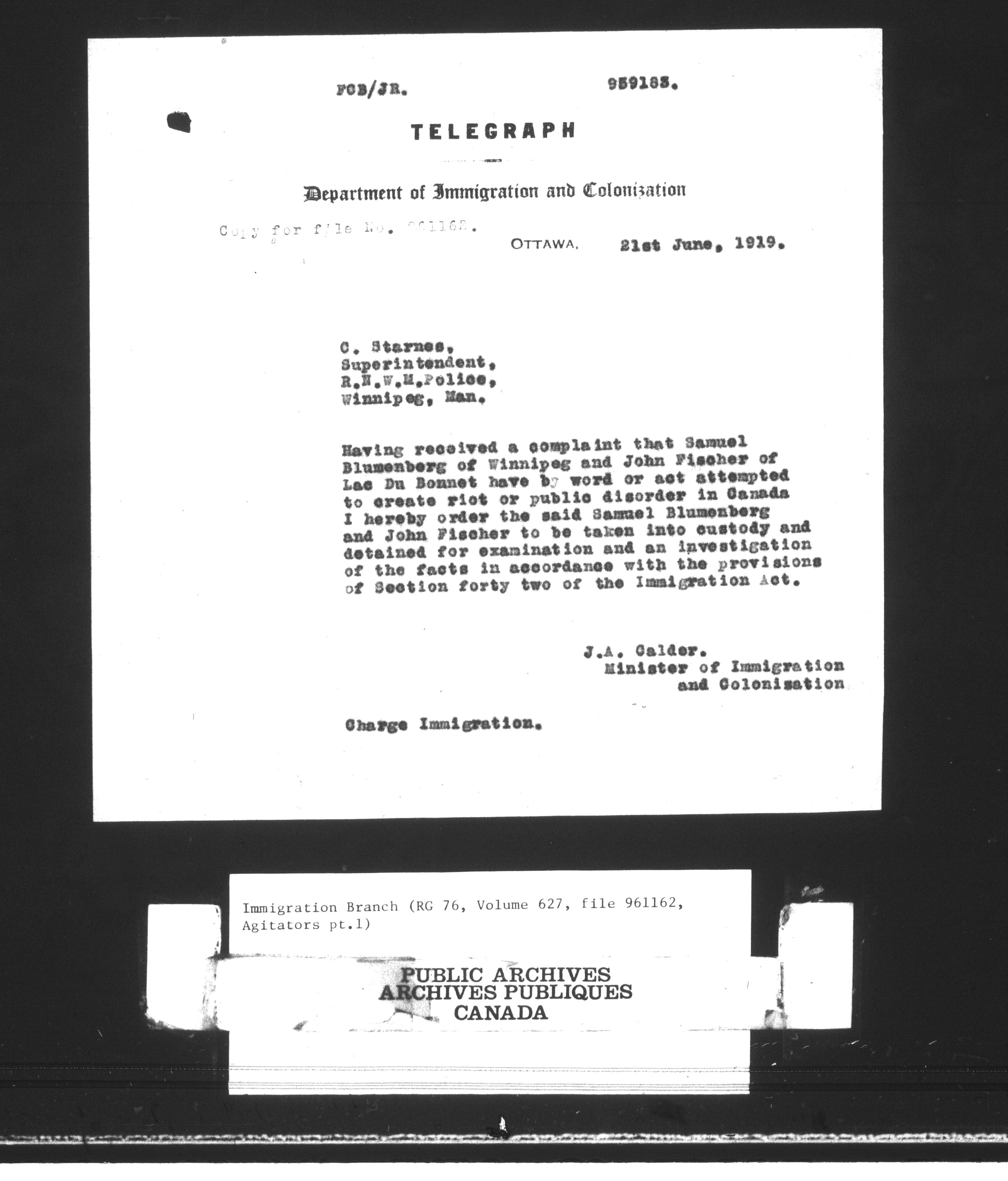 Subject, policy and case files in the First Central Registry series of the Immigration Program, 1892-1950 - 10442